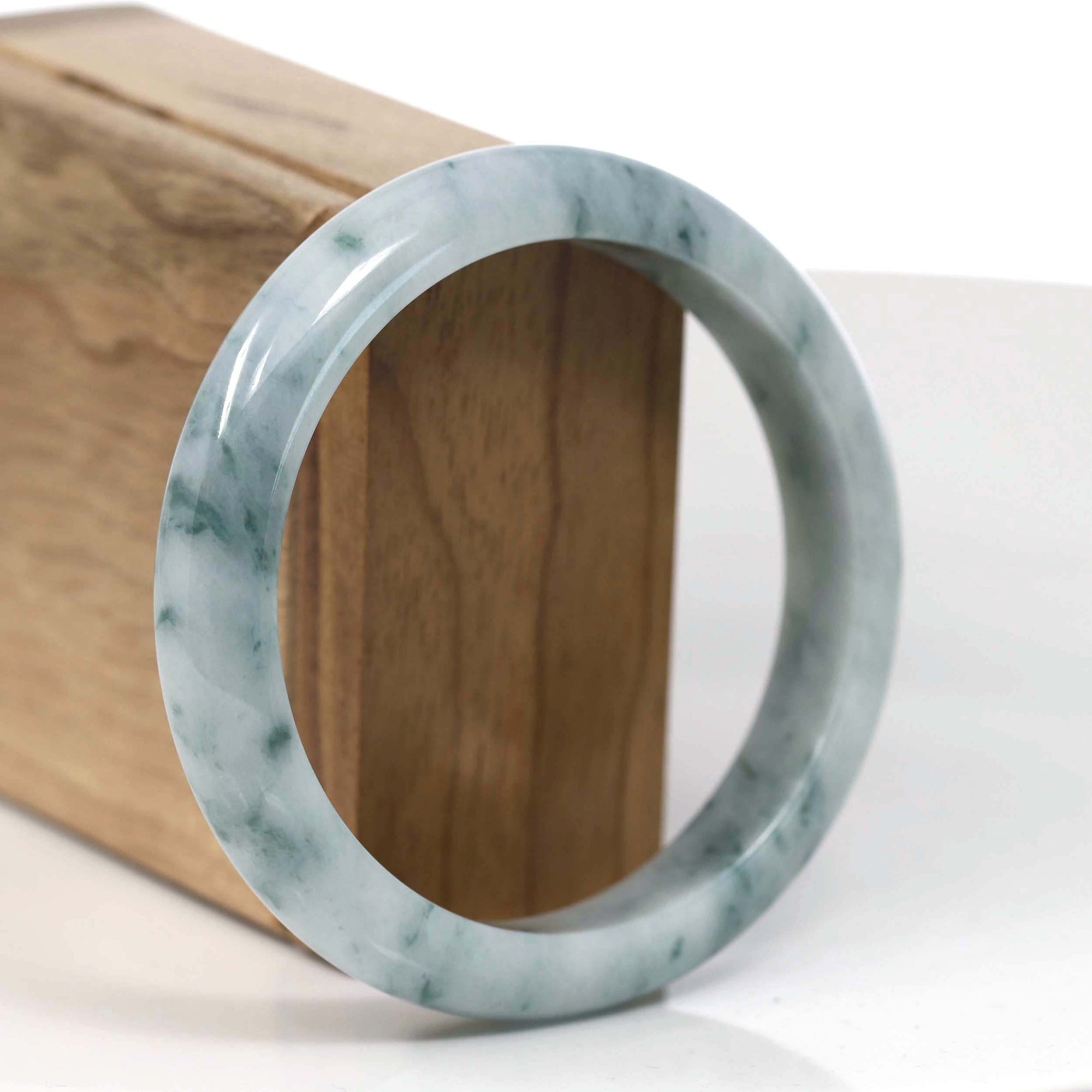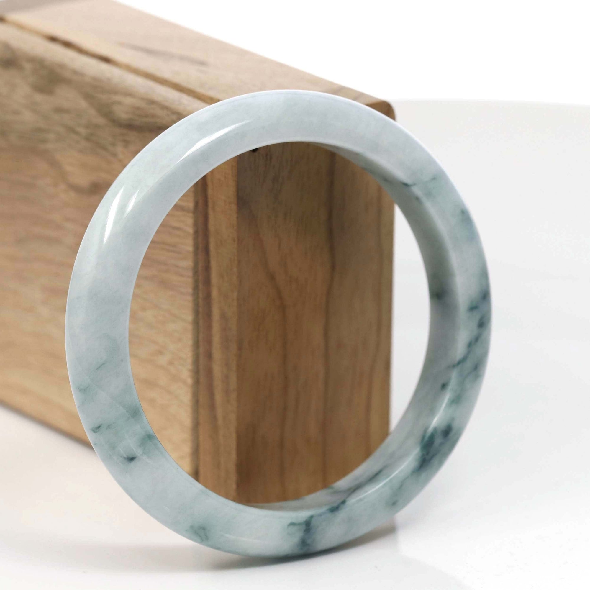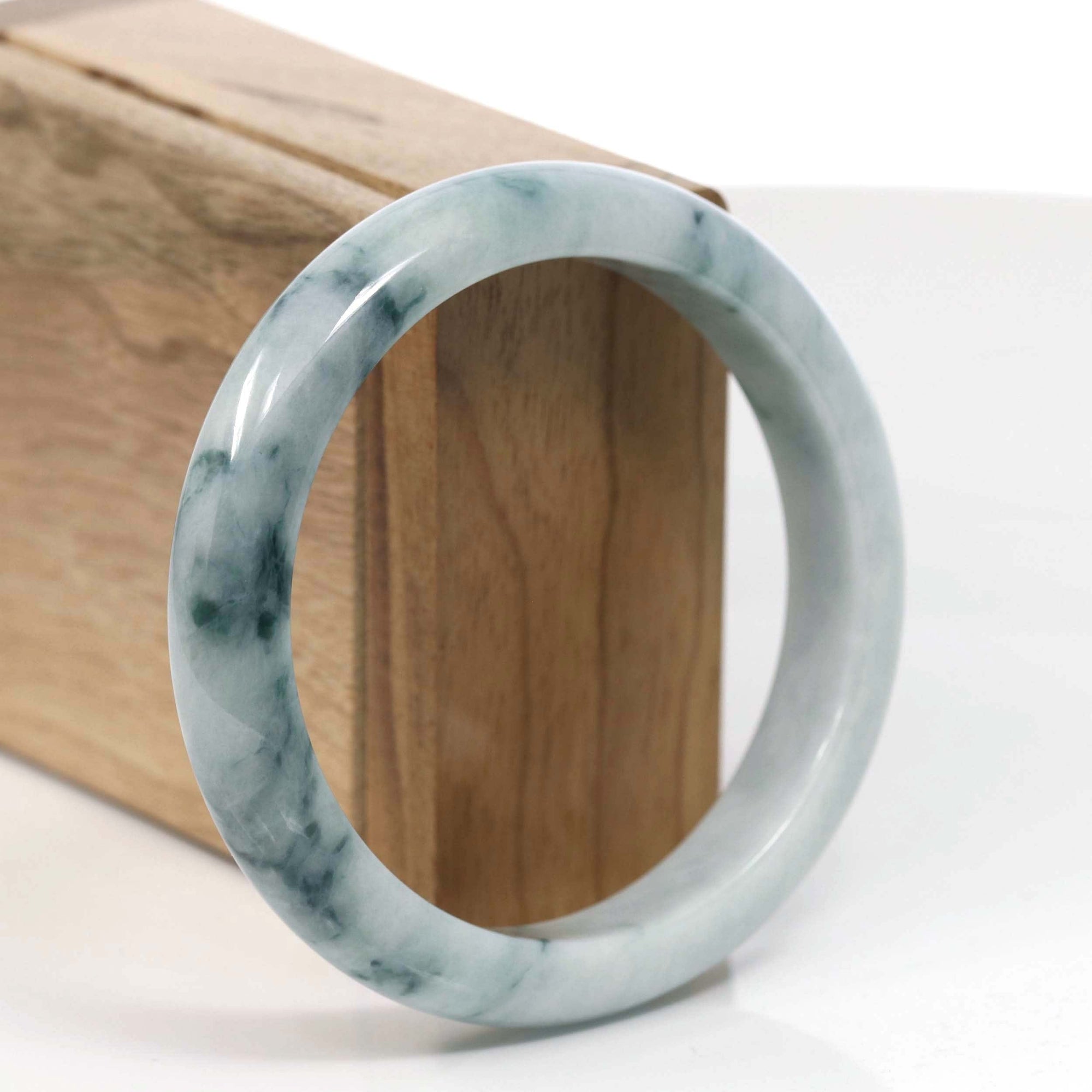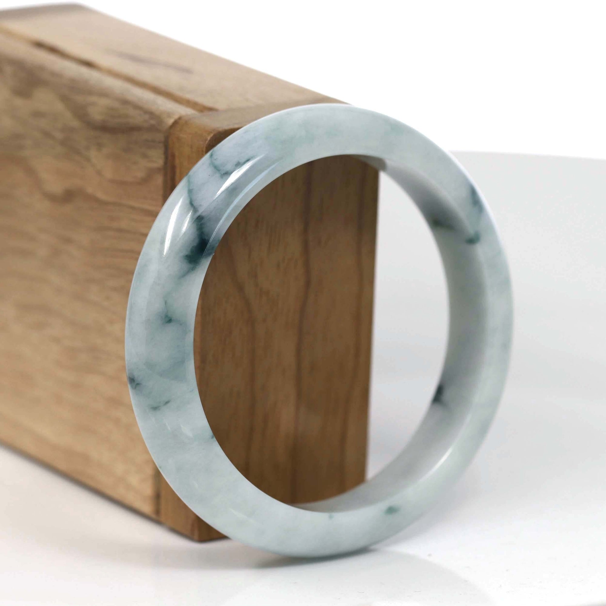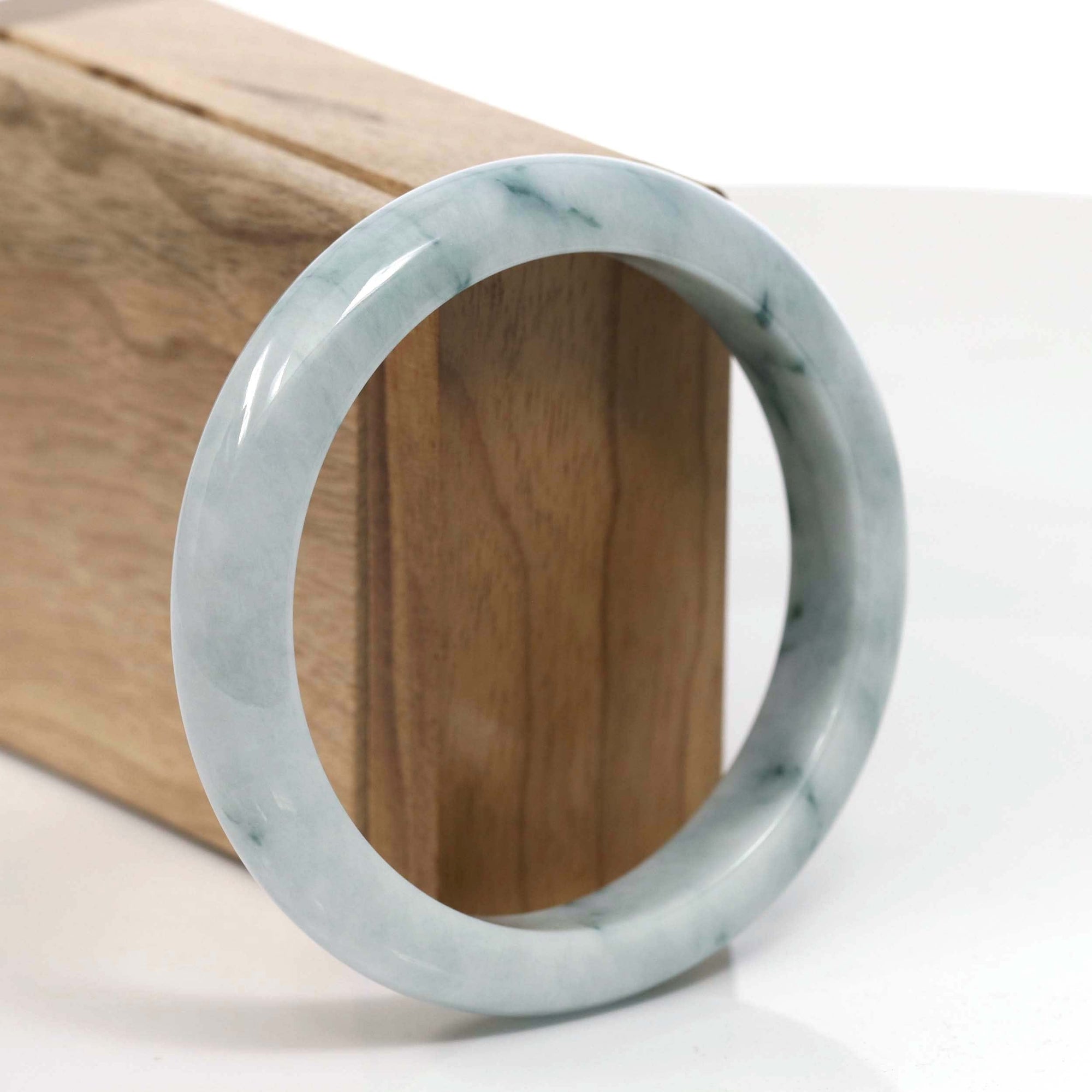 Baikalla™ "Classic" Genuine Jadeite Jade White-Green Bangle Bracelet (56.55mm) #T234