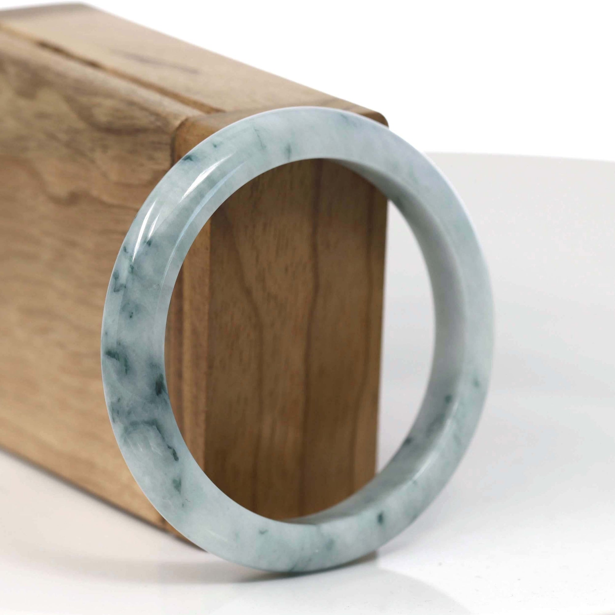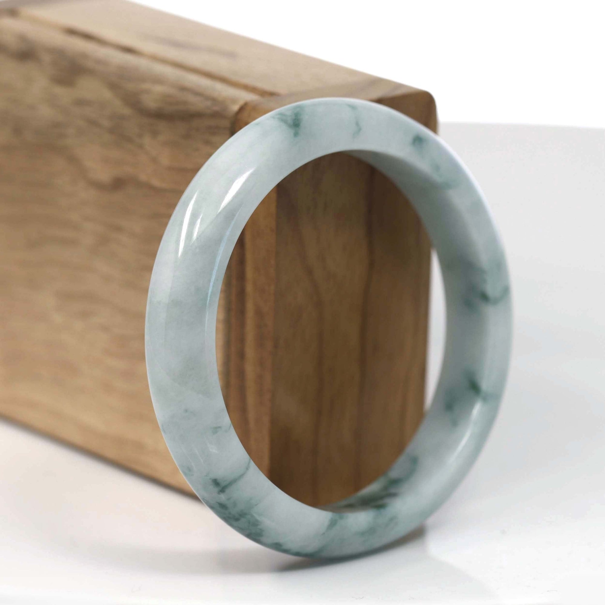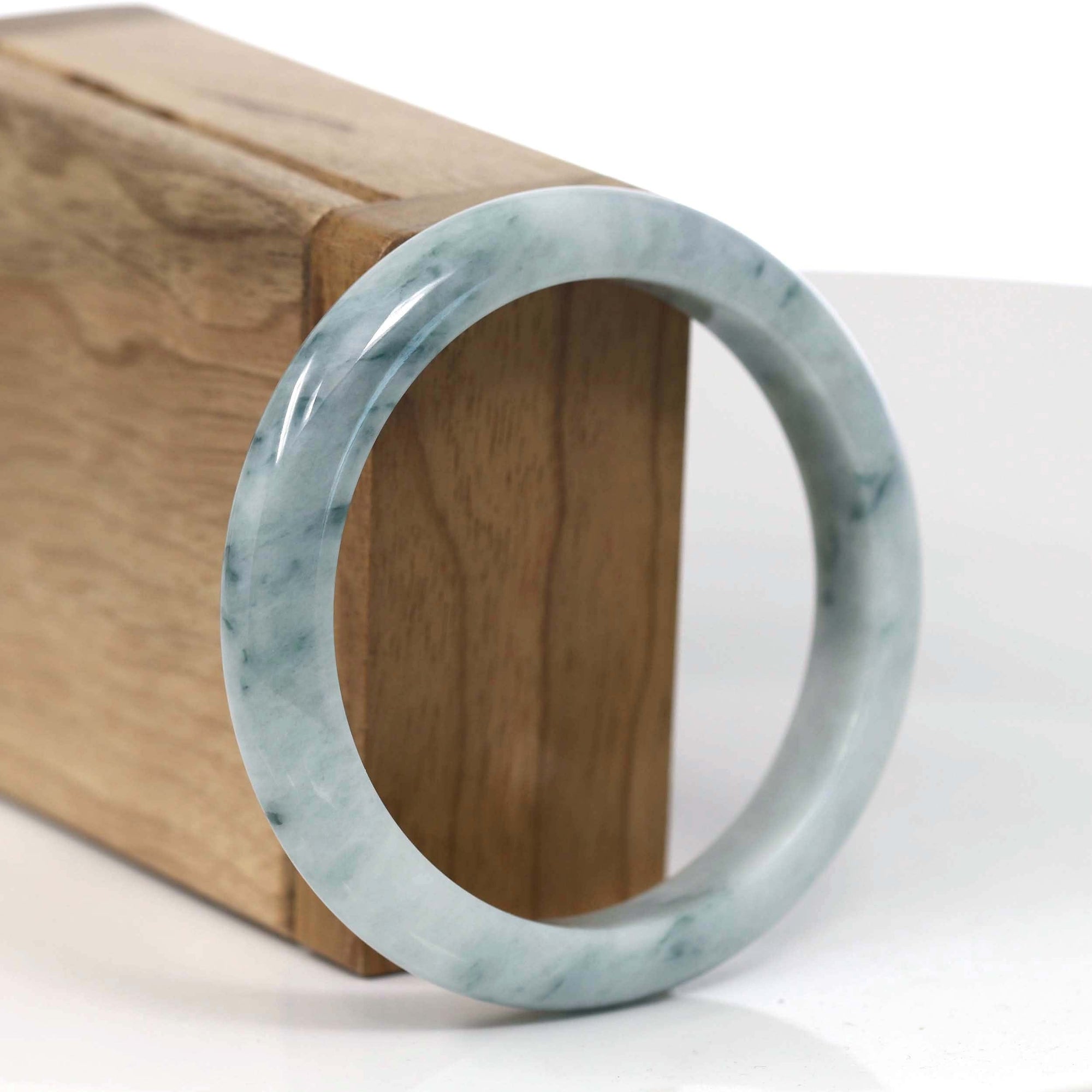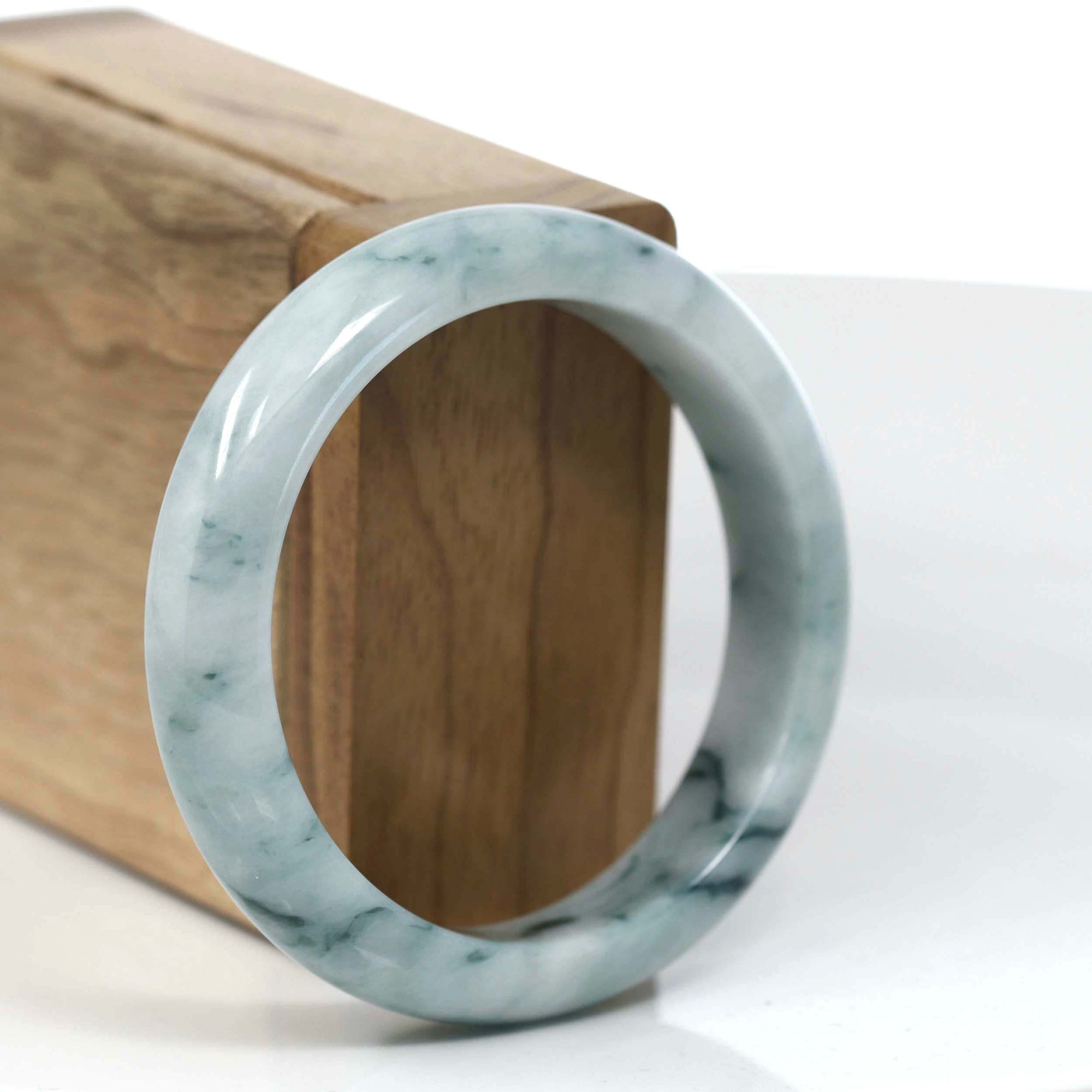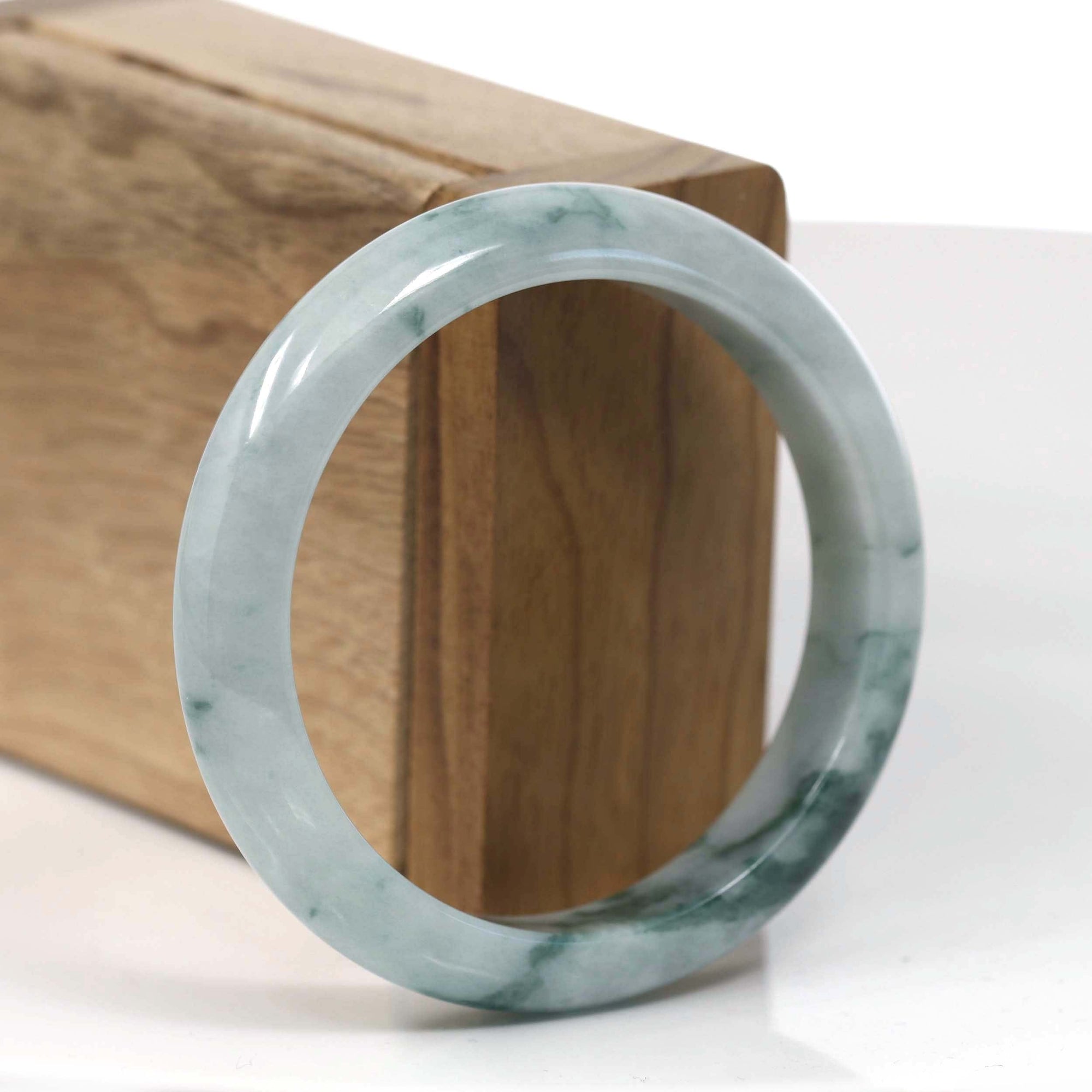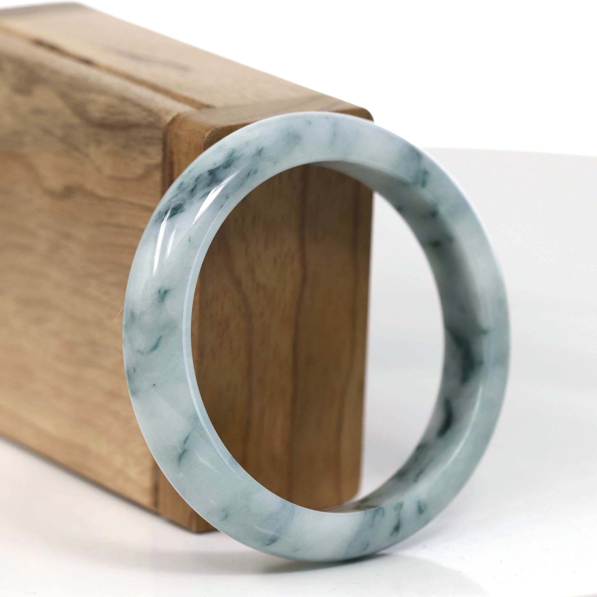 Baikalla™ "Classic" Genuine Jadeite Jade White-Green Bangle Bracelet (56.55mm) #T234