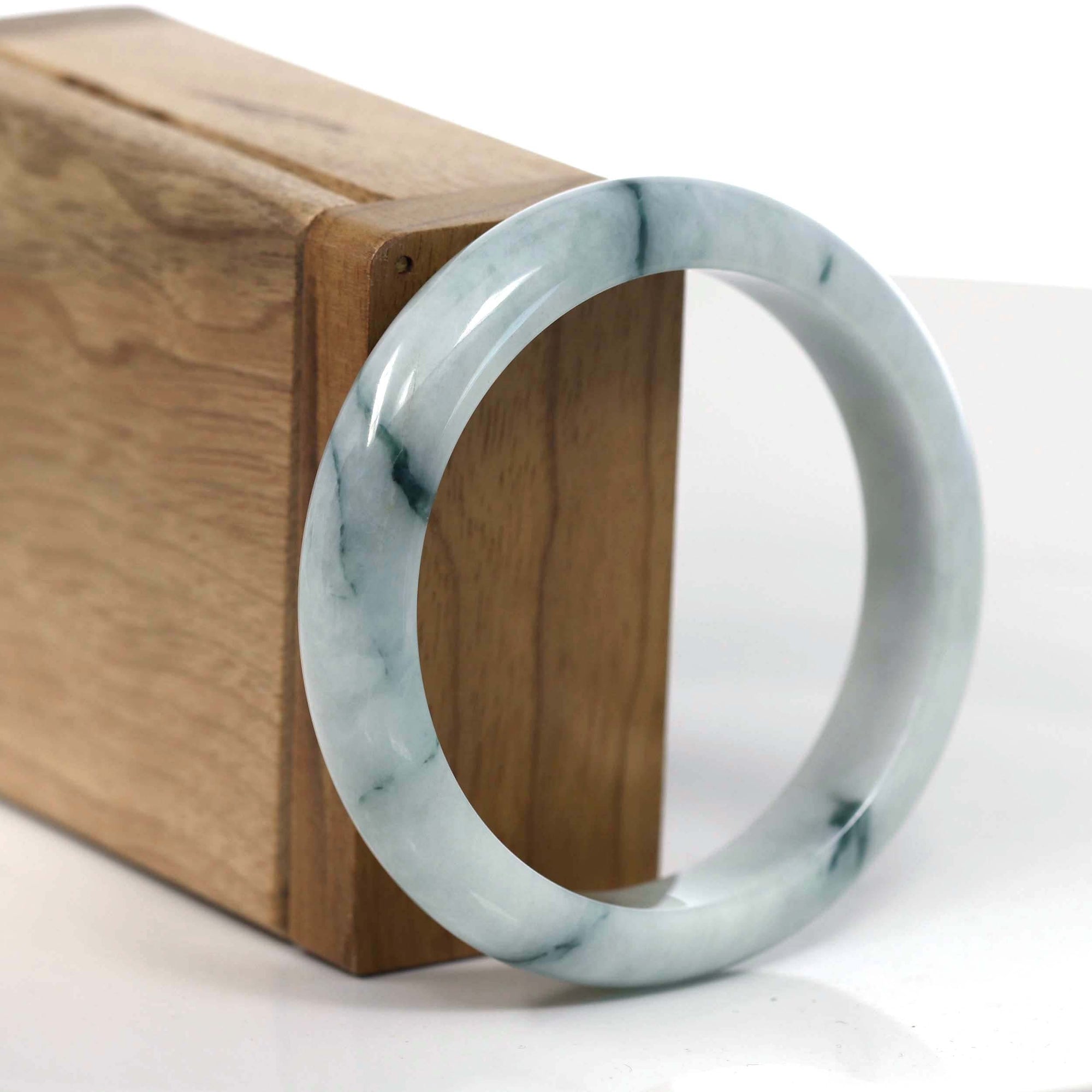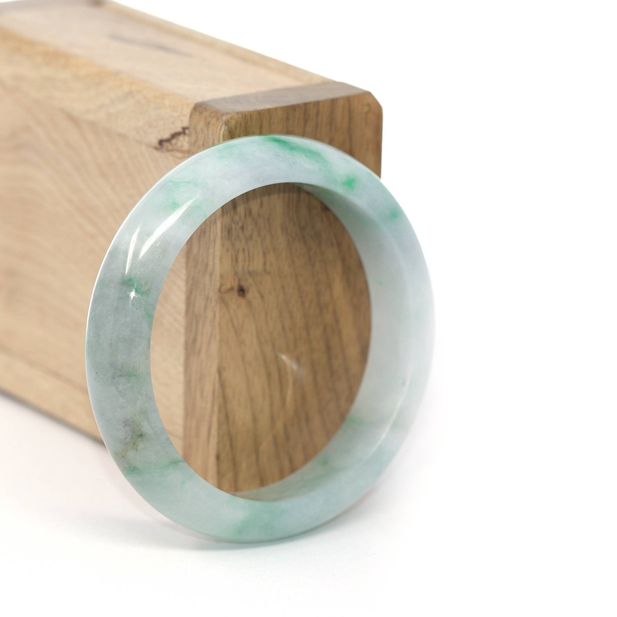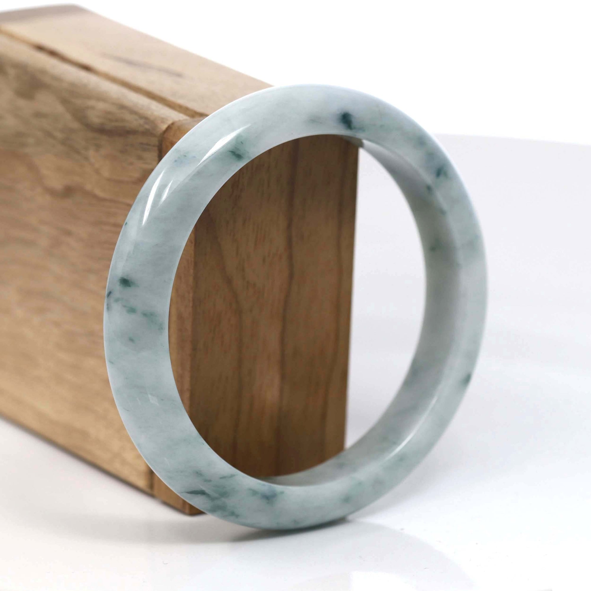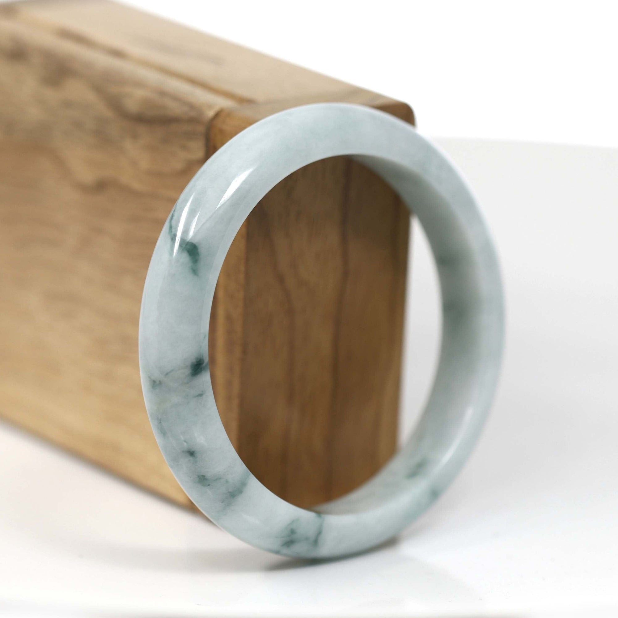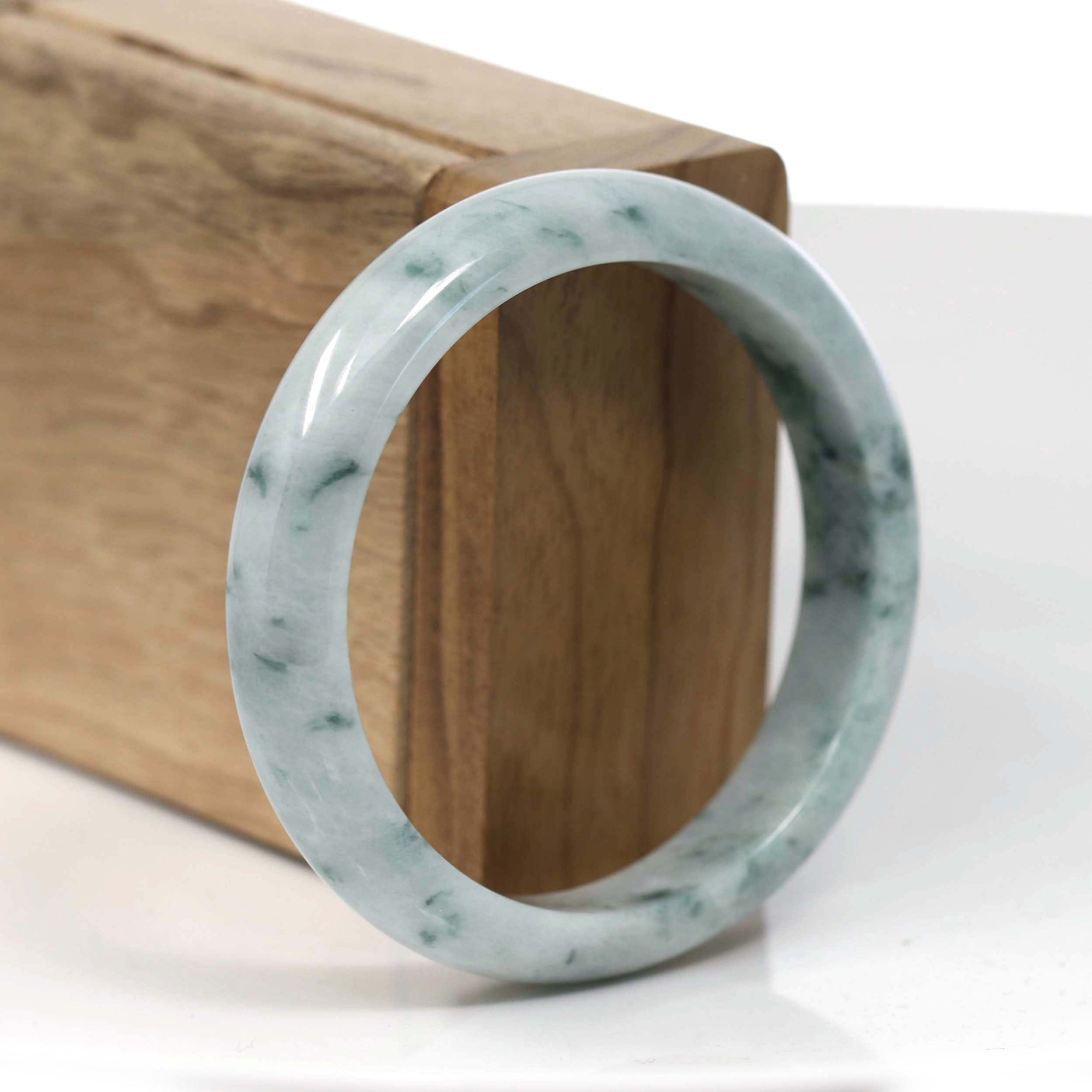 Baikalla™ "Classic" Genuine Jadeite Jade White-Green Bangle Bracelet (56.55mm) #T234