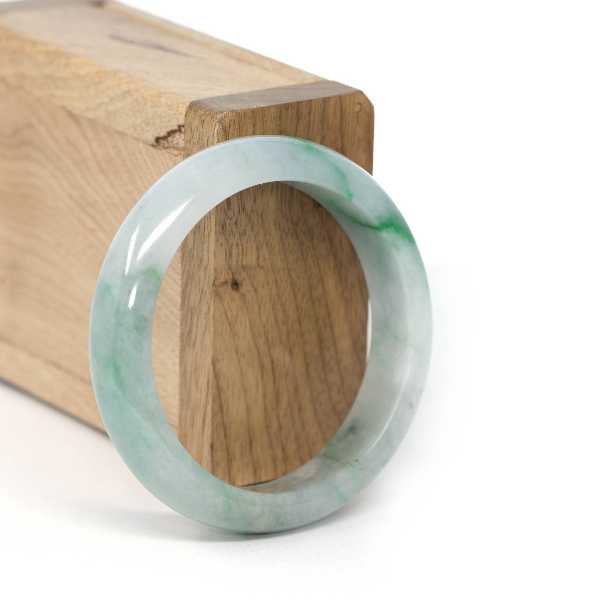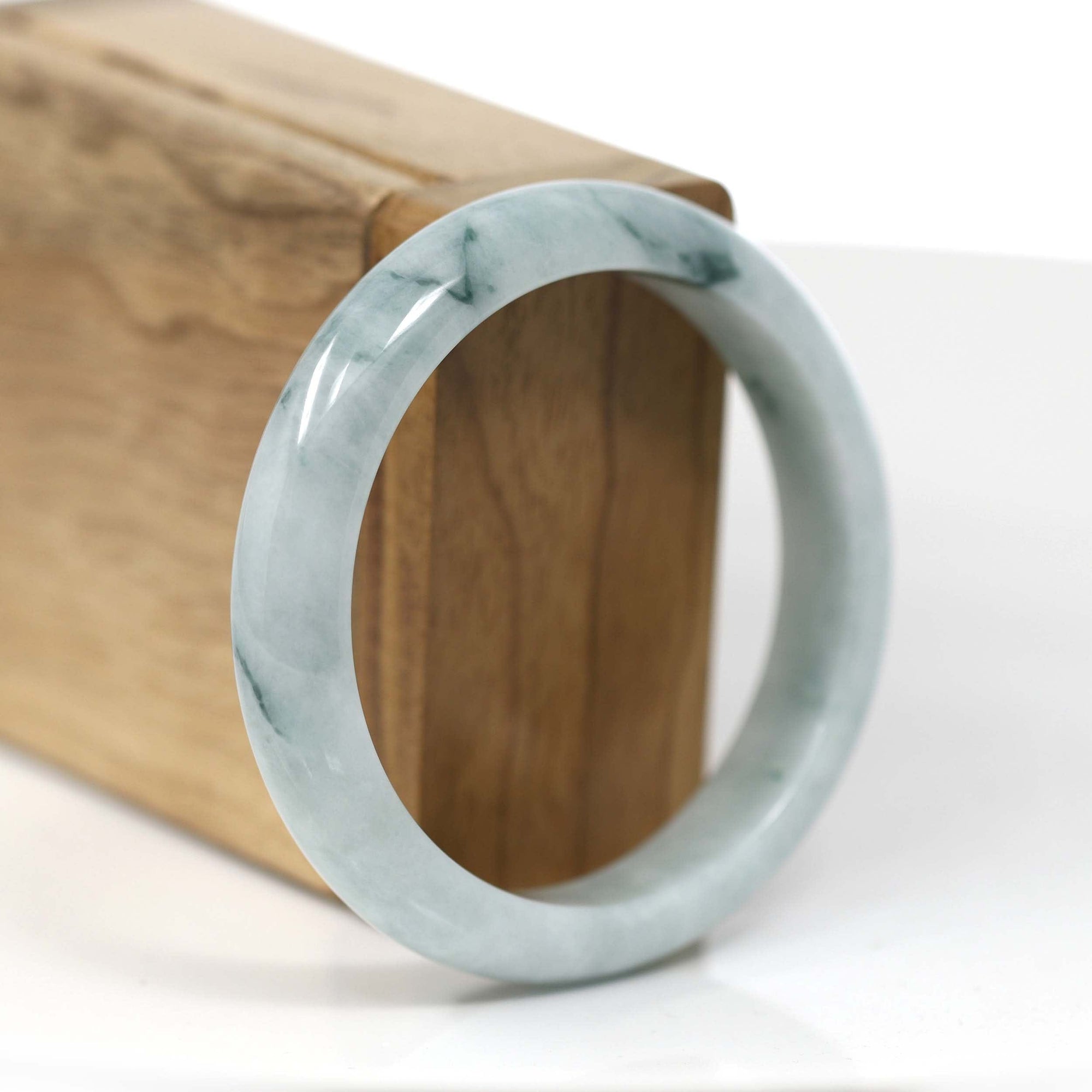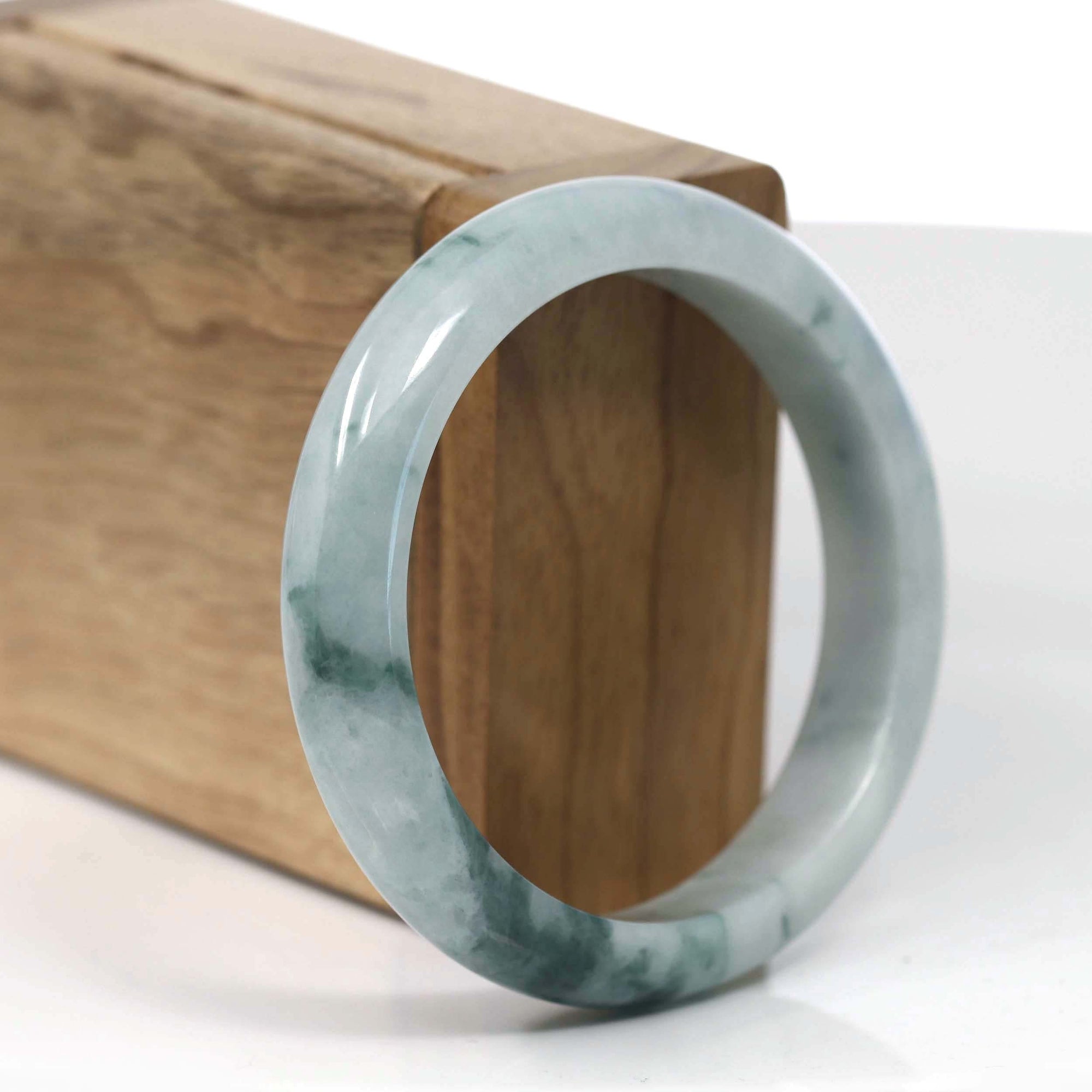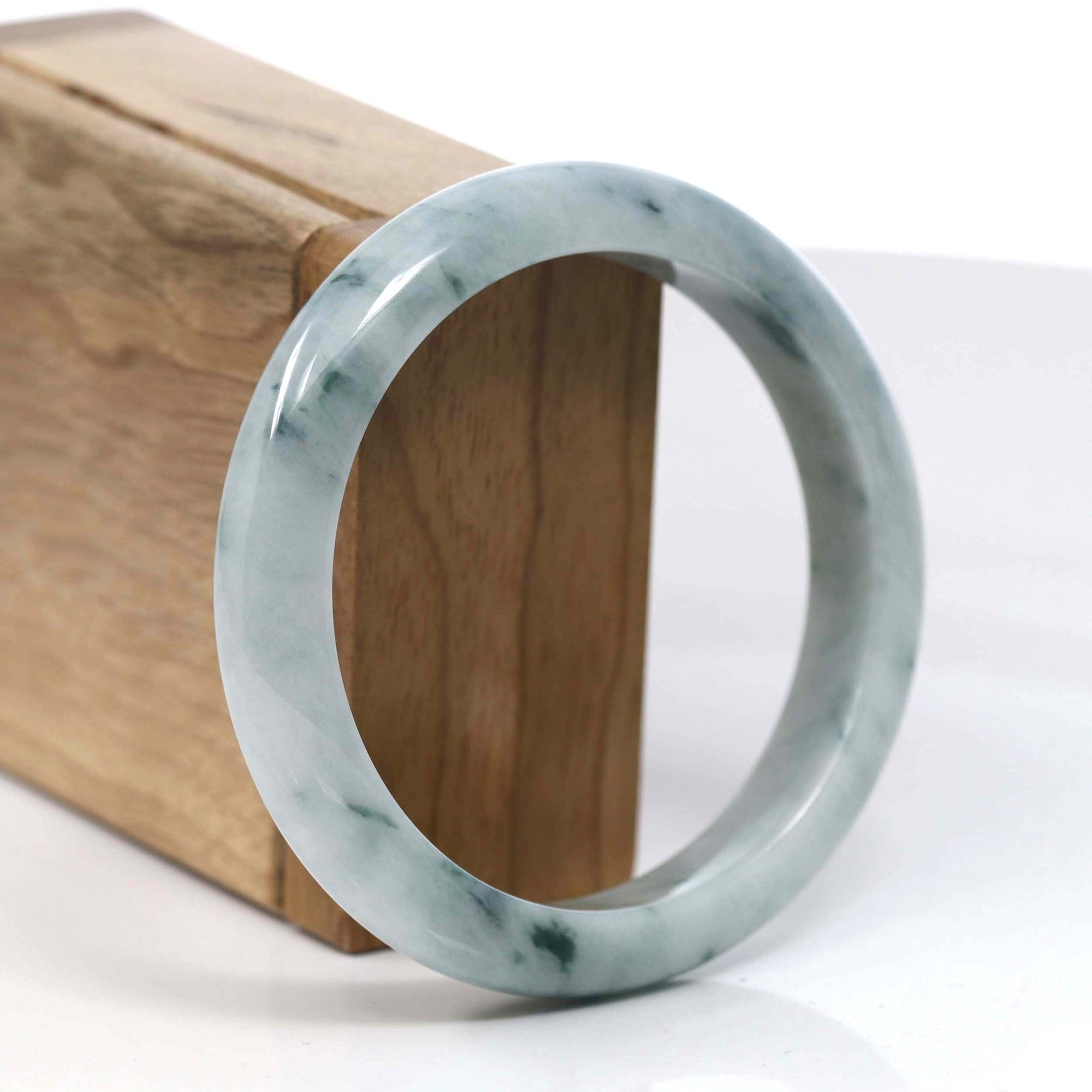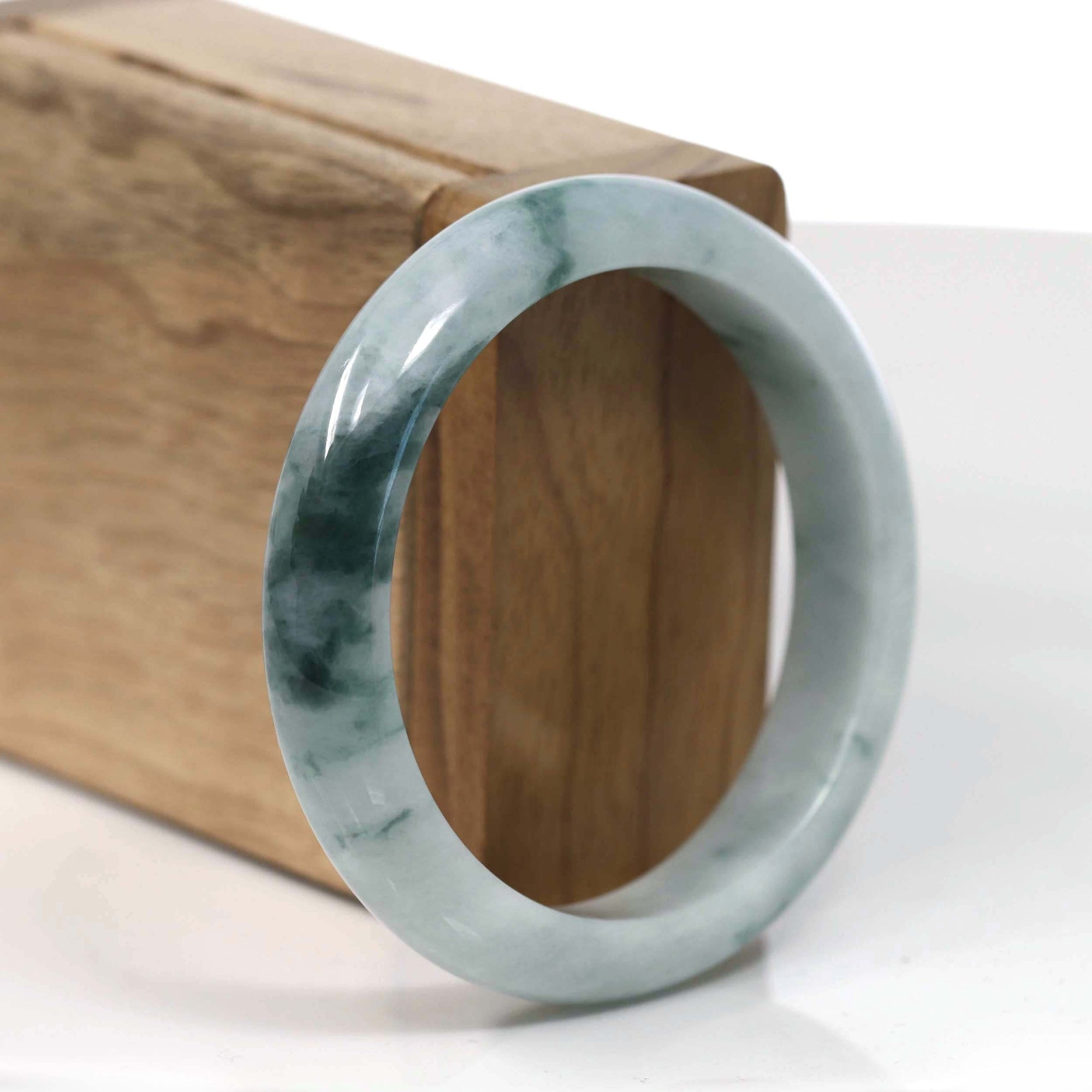 Baikalla™ "Classic" Genuine Jadeite Jade White-Green Bangle Bracelet (56.55mm) #T234