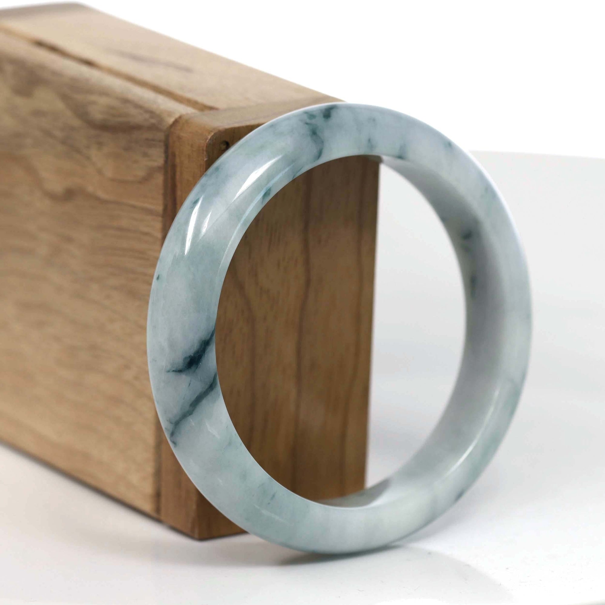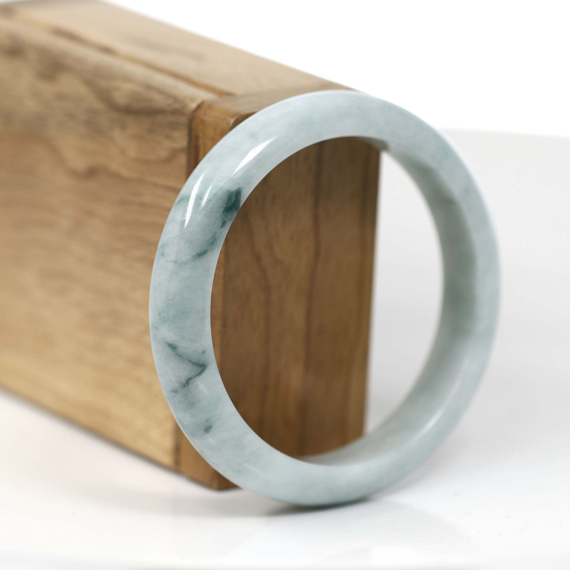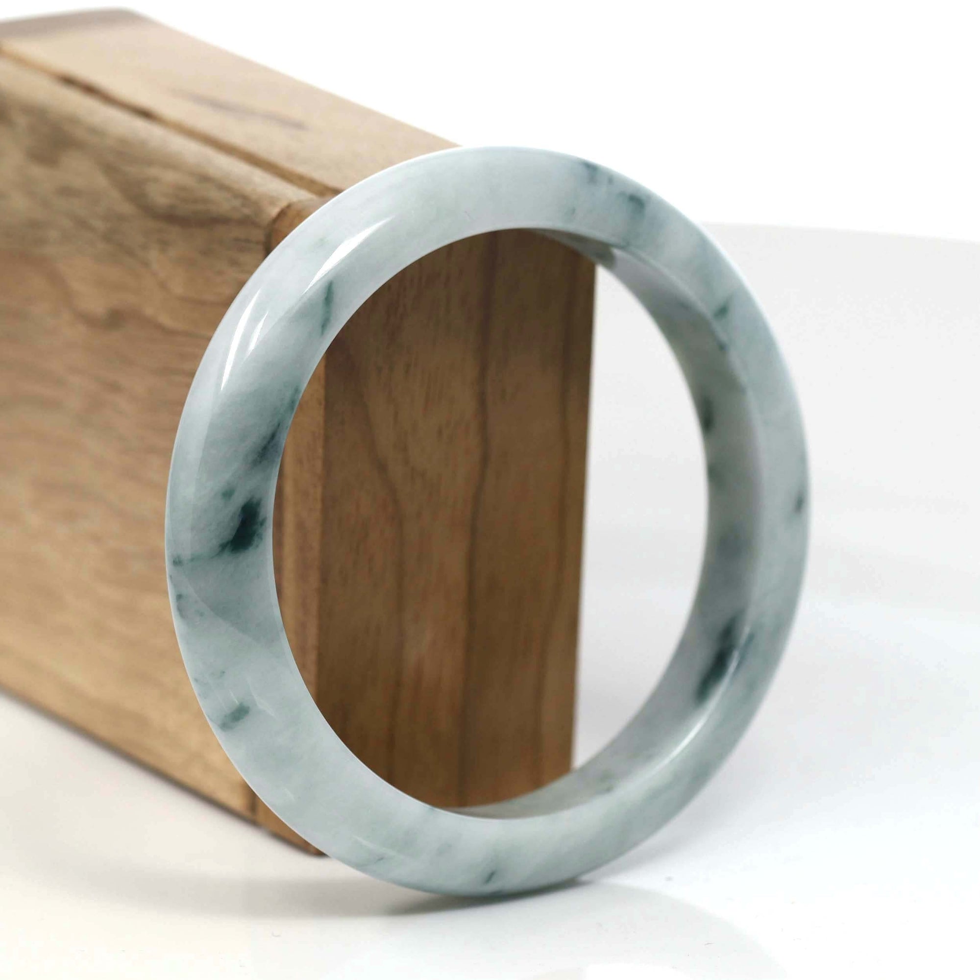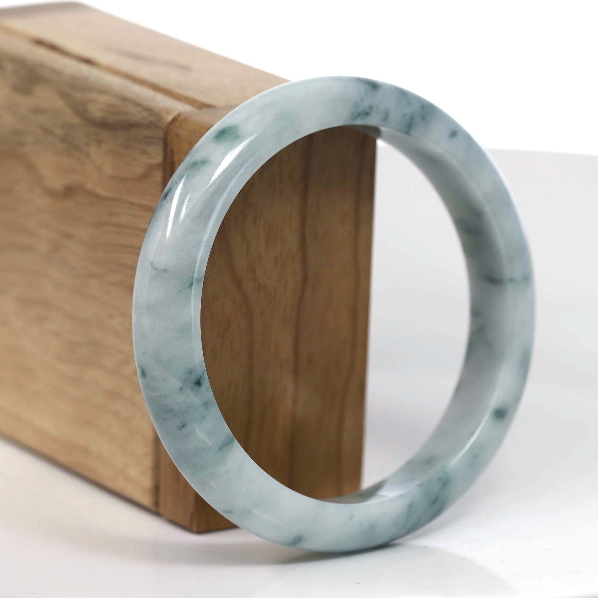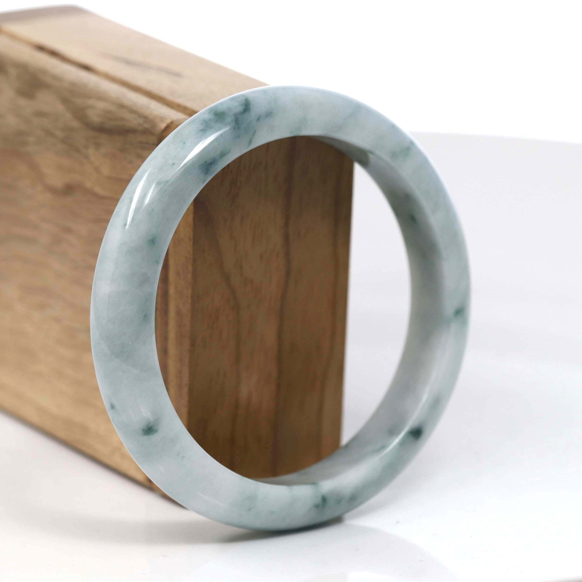 Baikalla™ "Classic" Genuine Jadeite Jade White-Green Bangle Bracelet (56.55mm) #T234