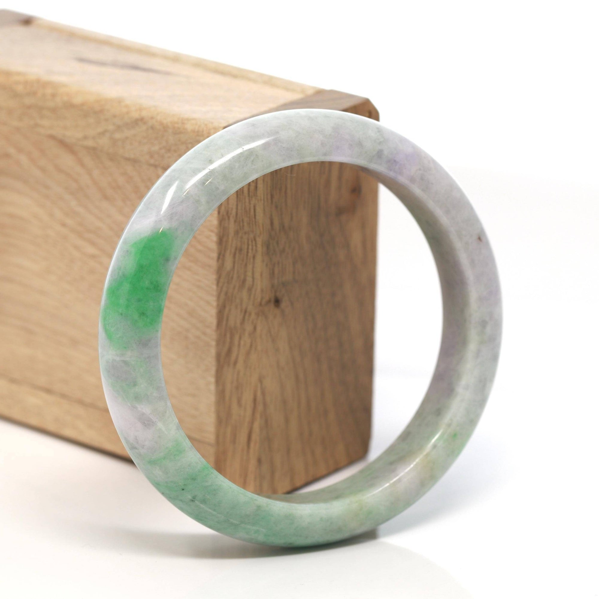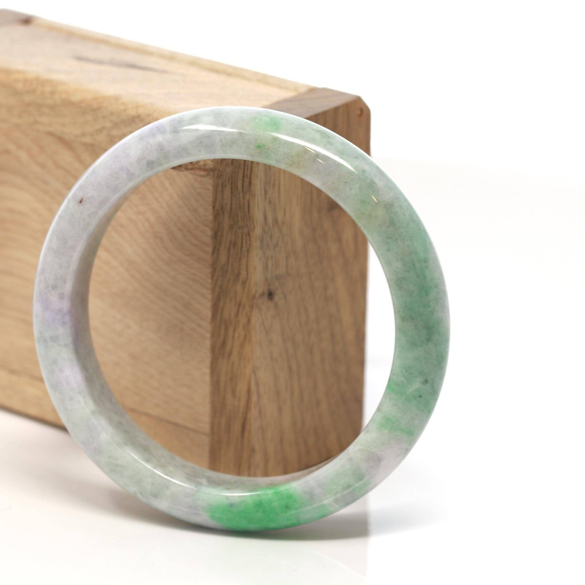 Baikalla White-Lavender & Vibrant Green Jadeite Jade Bangle Bracelet (58.4 mm) #136
