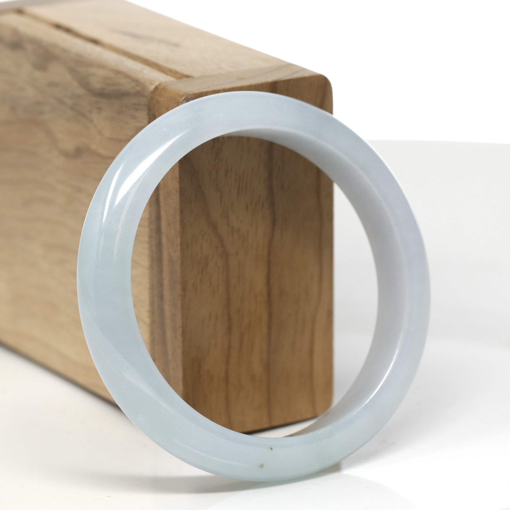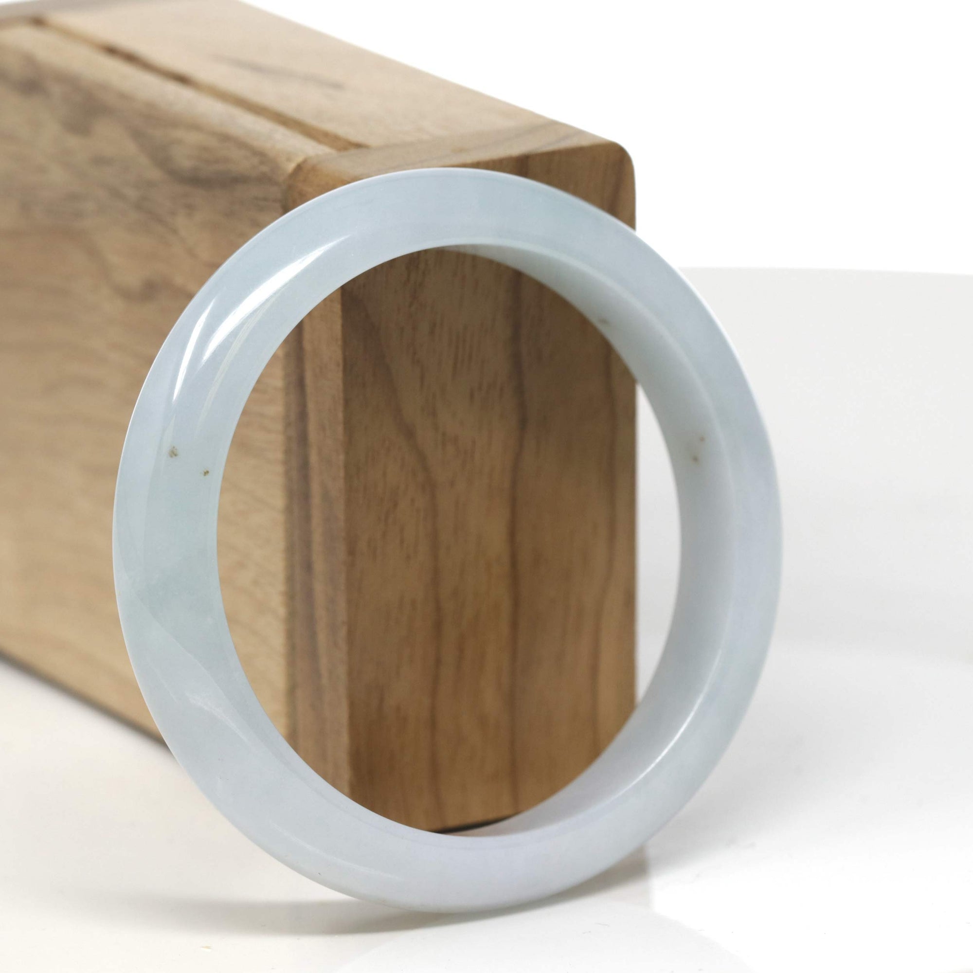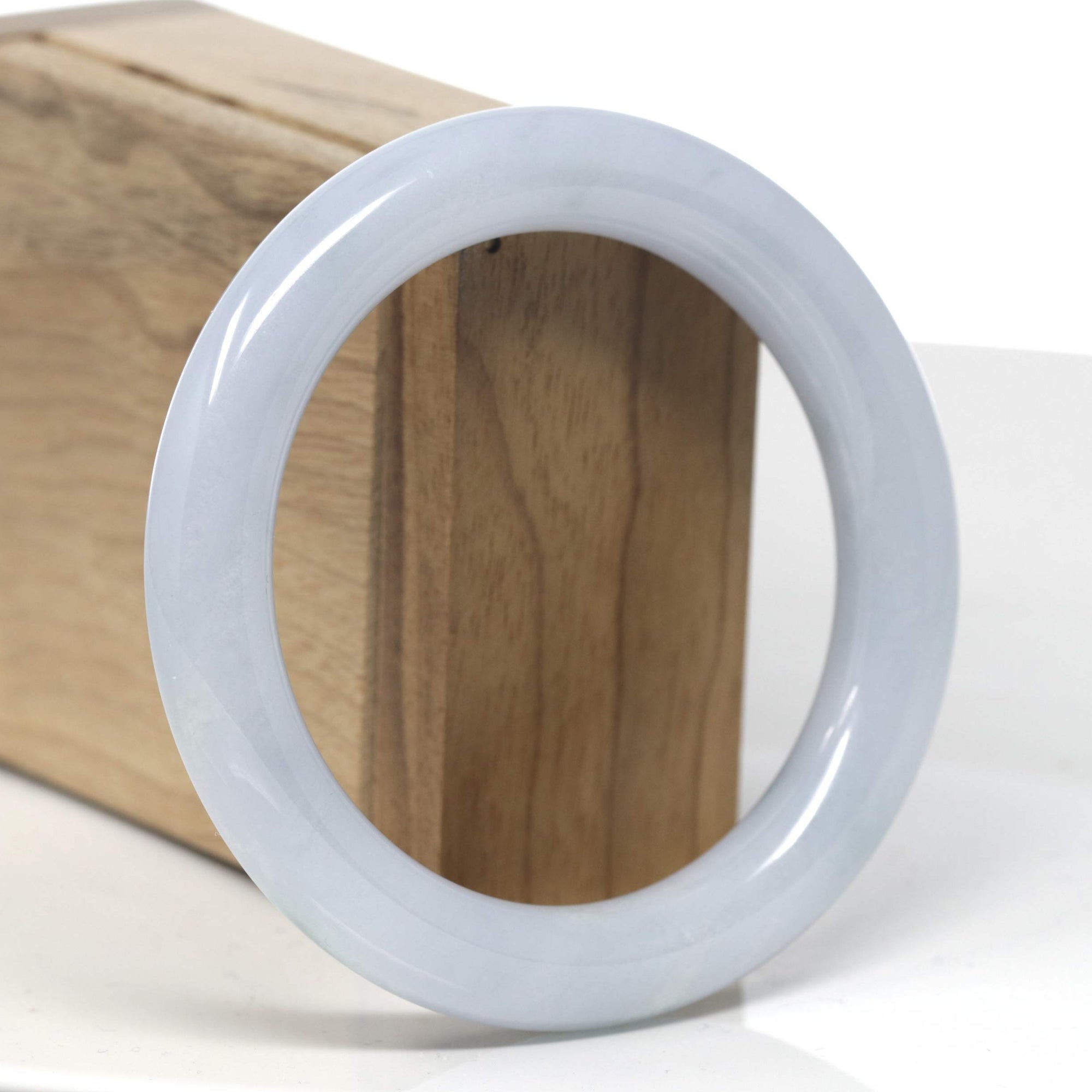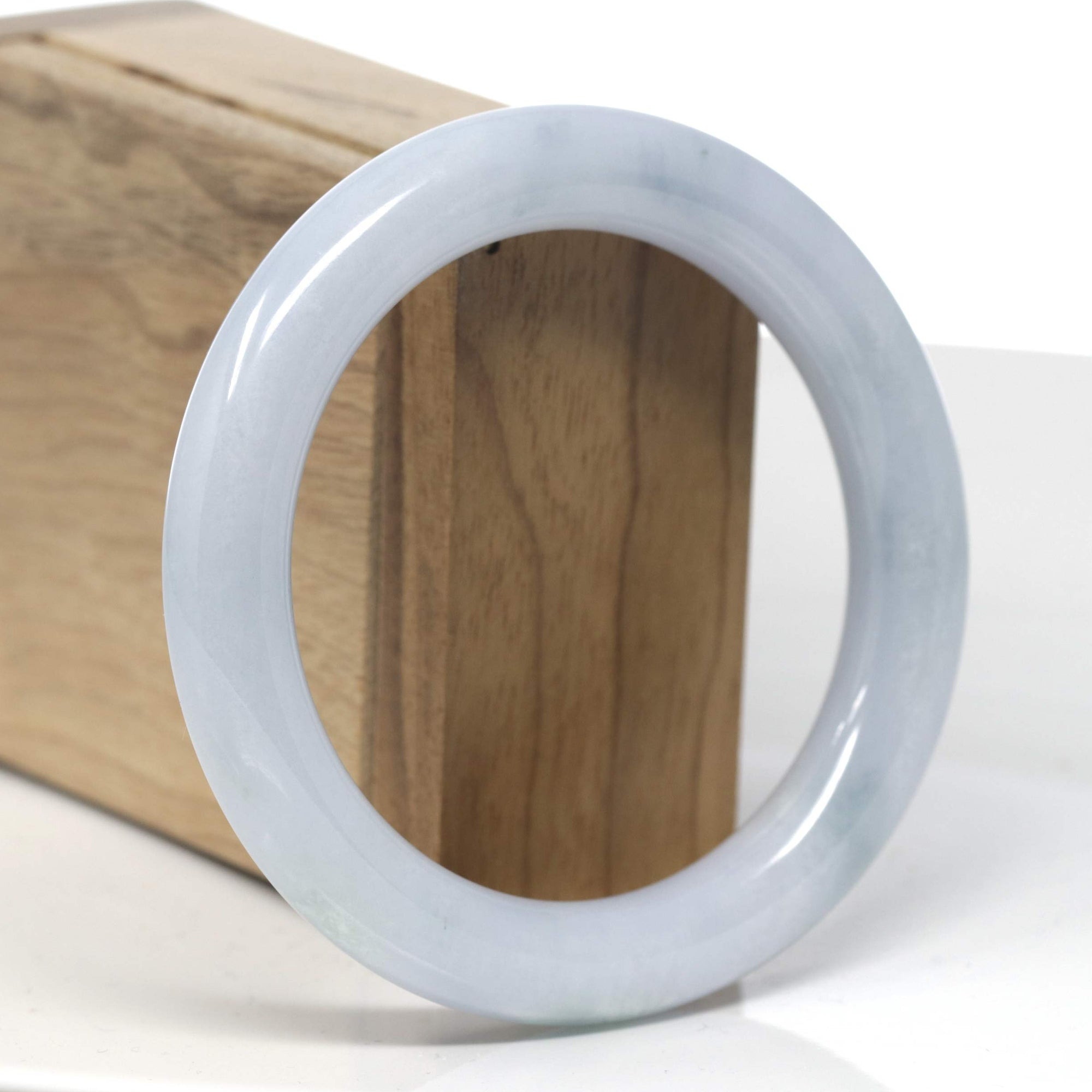 Baikalla Light Green & White Jadeite Jade "Traditional Full Round" Bangle Bracelet (56mm) #TT160