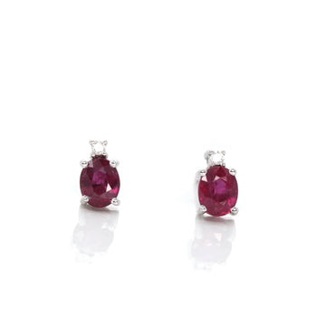 Baikalla 14k Classic White Gold Natural 4*5mm 7/10ct Ruby Earrings w/Diamond