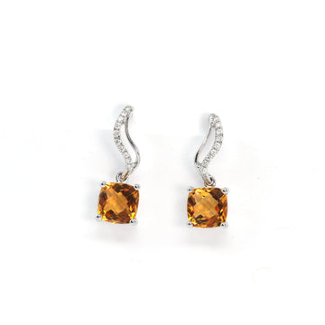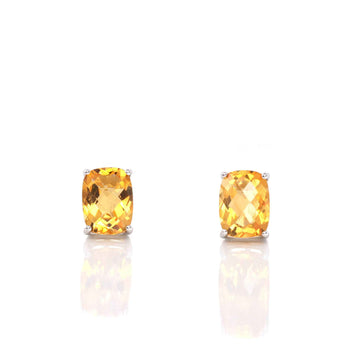 Baikalla 14k Classic White Gold Natural 6*8mm Emerald Cushion Cut Citrine Earrings