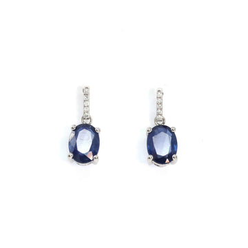 Baikalla™ 18k White Gold Natural Oval Sapphire With Natural Diamond Stud Earrings