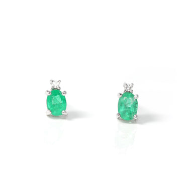 Baikalla™ Classic 18k White Gold AA Emerald Stud Earrings With Diamonds