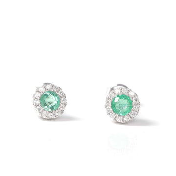 Baikalla™ 14k Classic White Gold Natural Emerald Earrings w/Diamond Halo