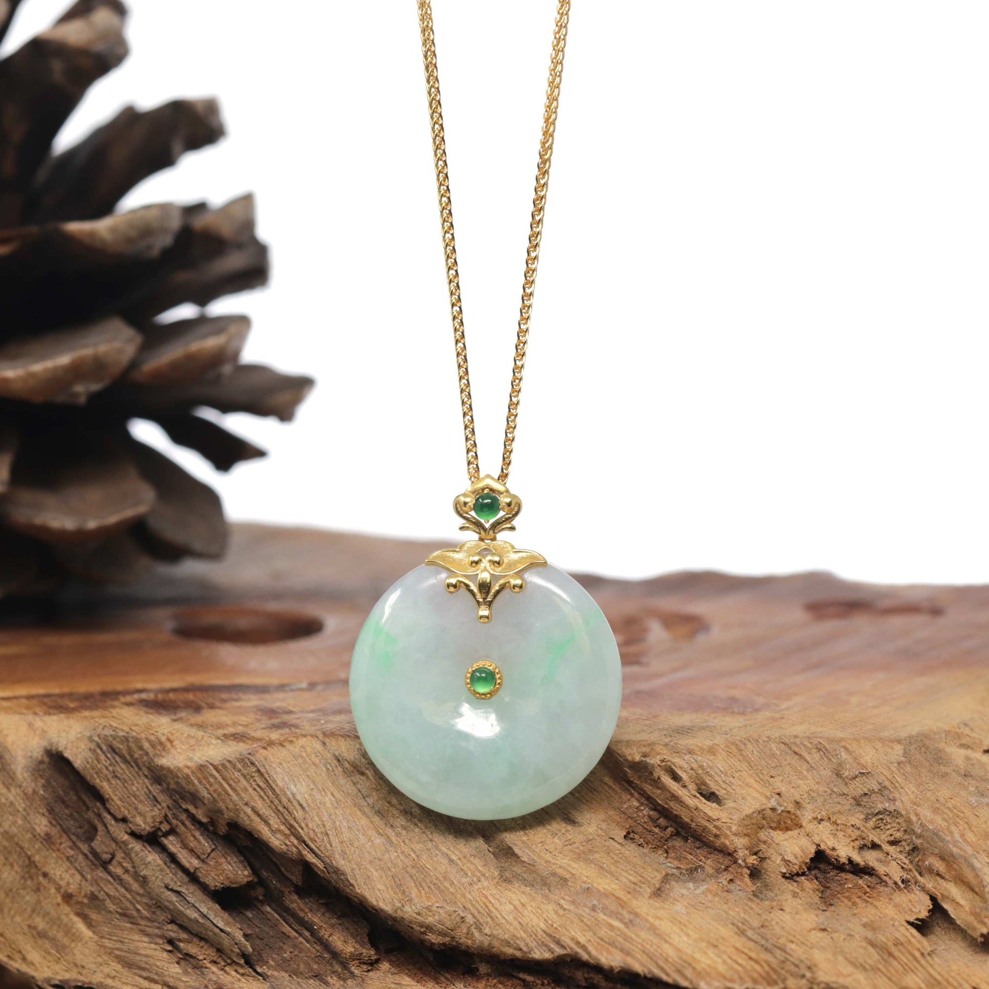 Baikalla 18K Yellow Gold "Ping An Kou" (Good Luck Button) Natural Icy Light Apple-Green Jadeite Jade Pendant