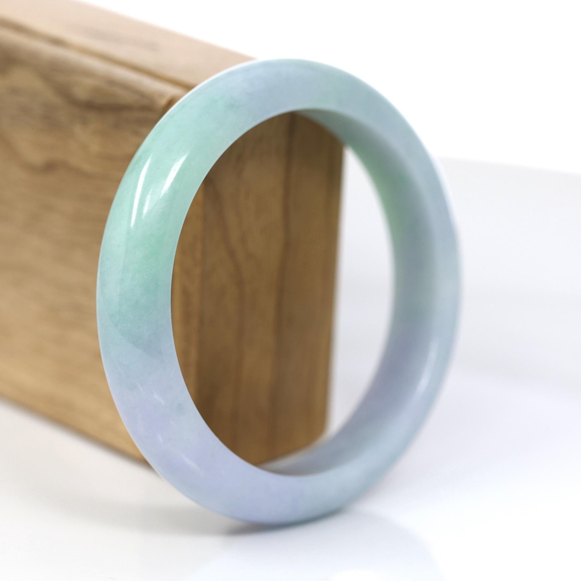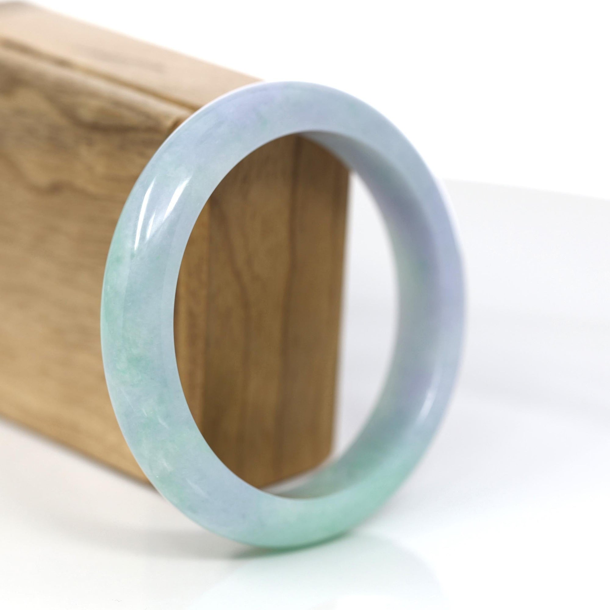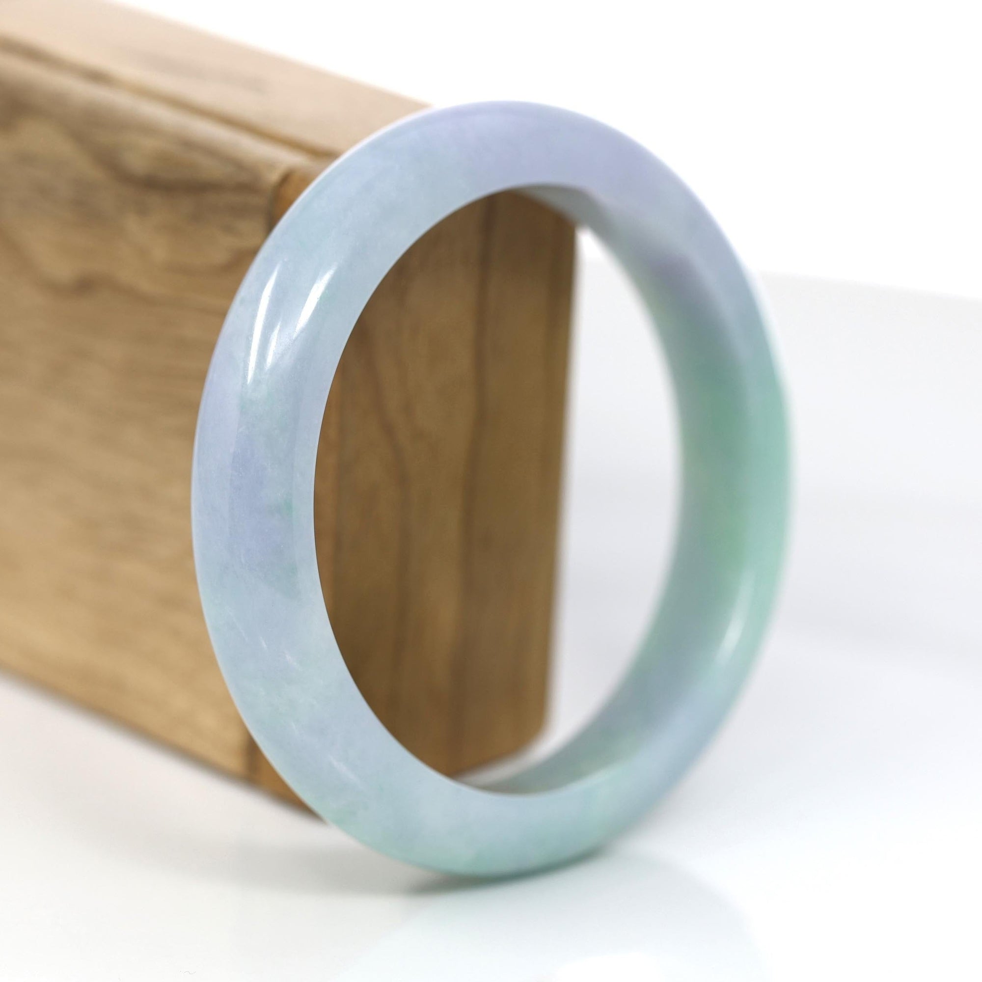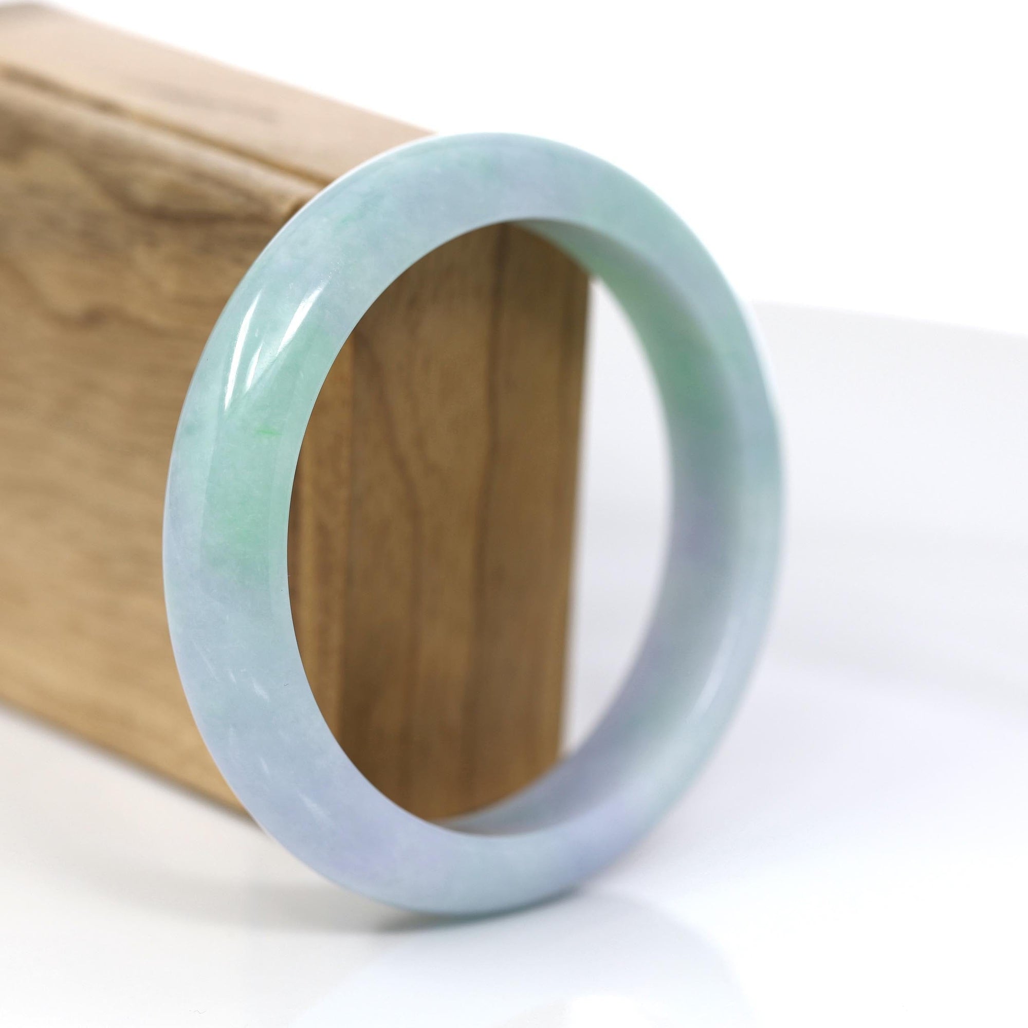 "Princess Half Round" Green Lavender Natural Jadeite Jade Bangle (60.45 mm) #377