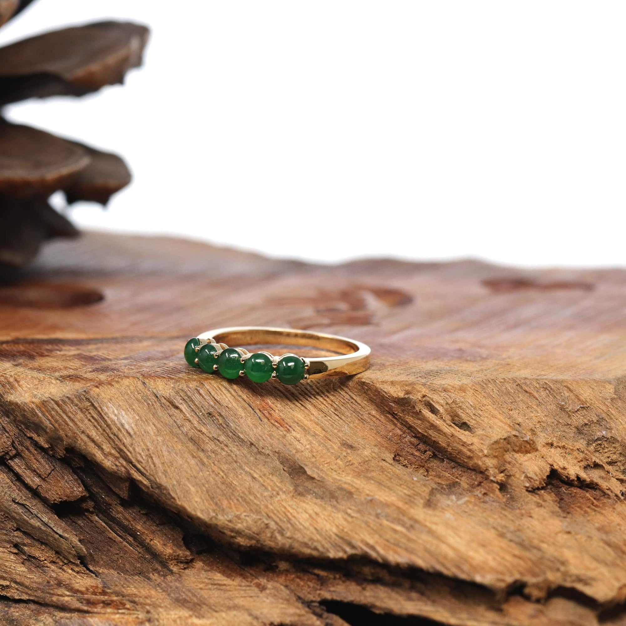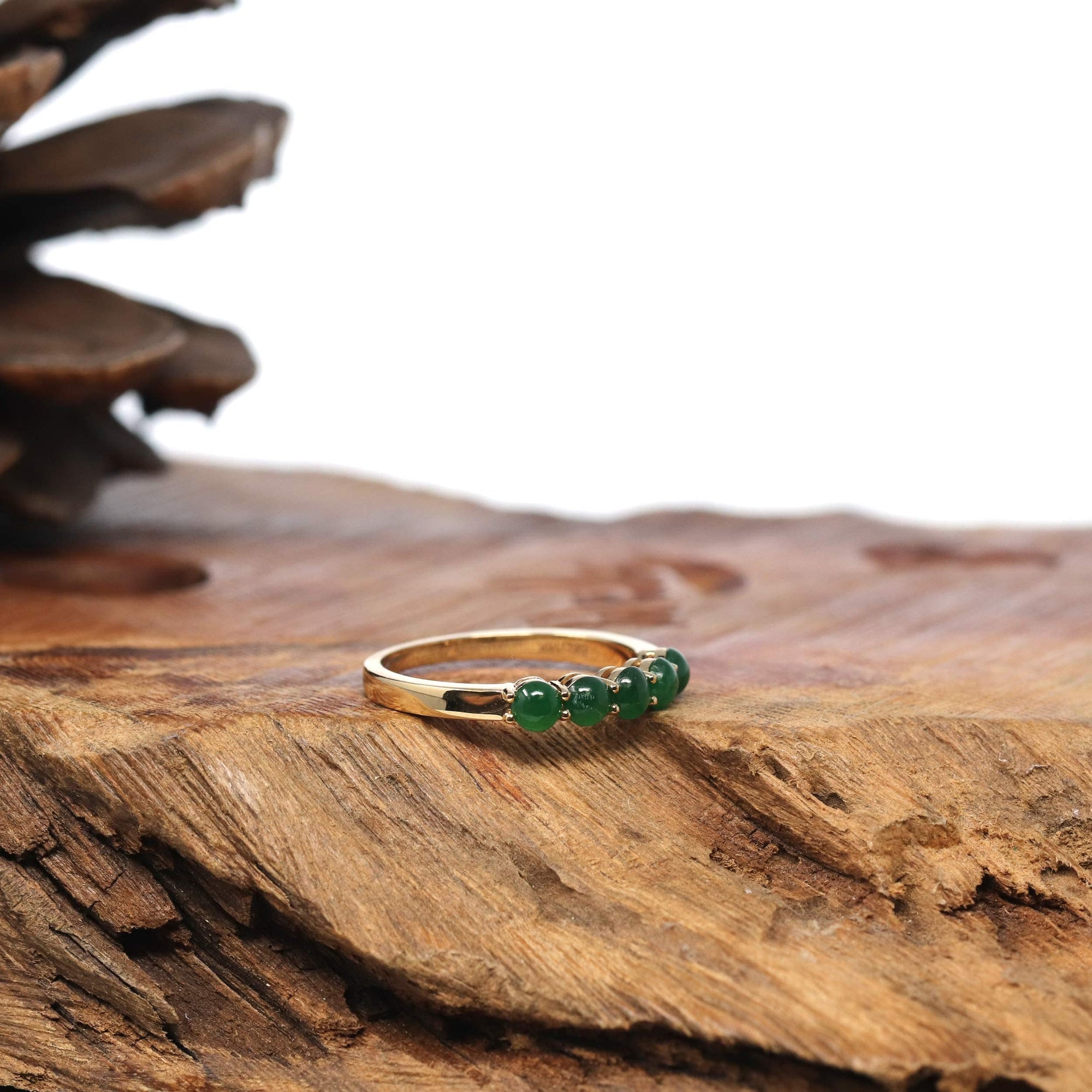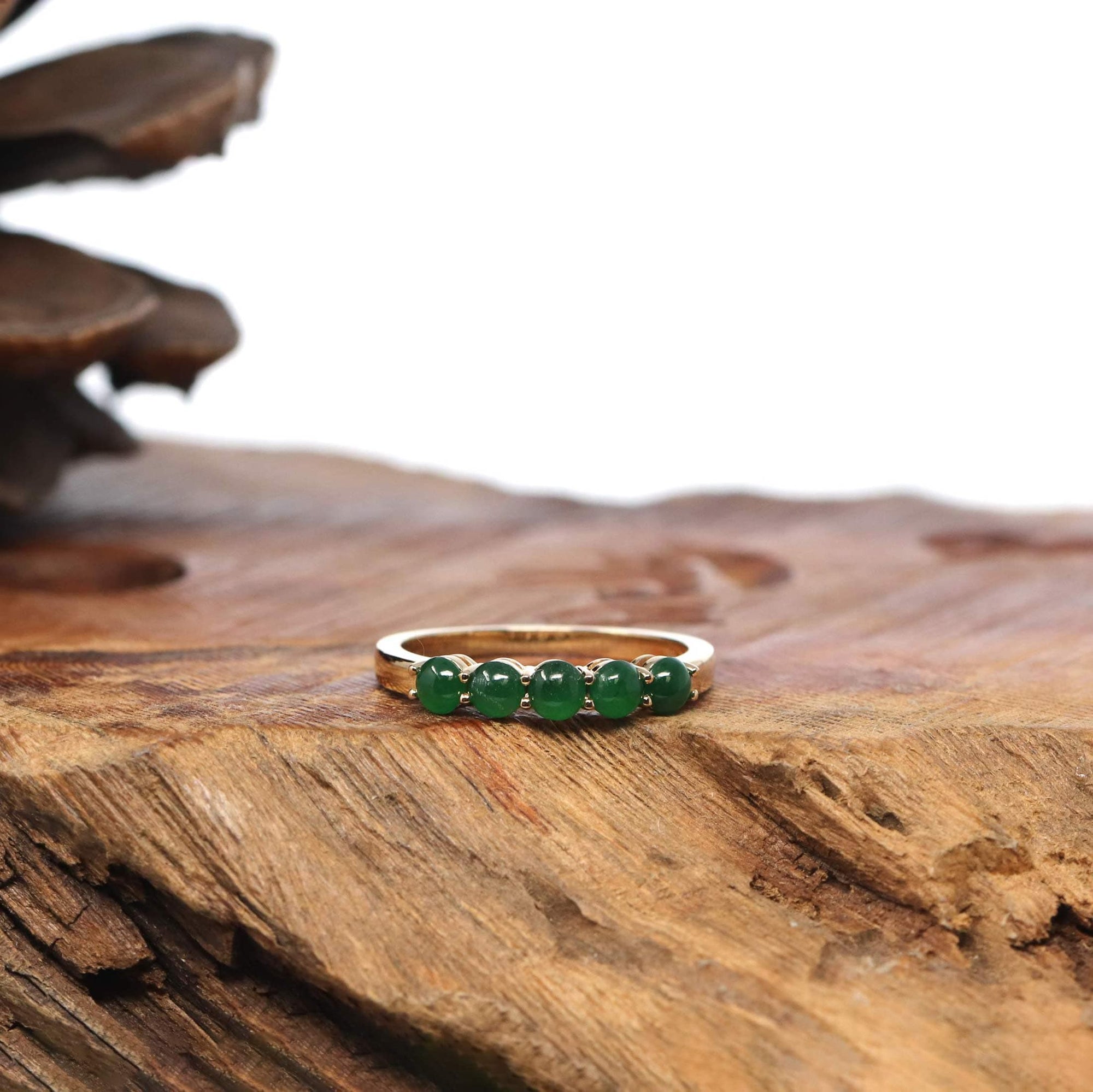 Baikalla "5 Stone Anniversary" 14k Rose / Yellow Gold Natural Imperial Jadeite Jade Band