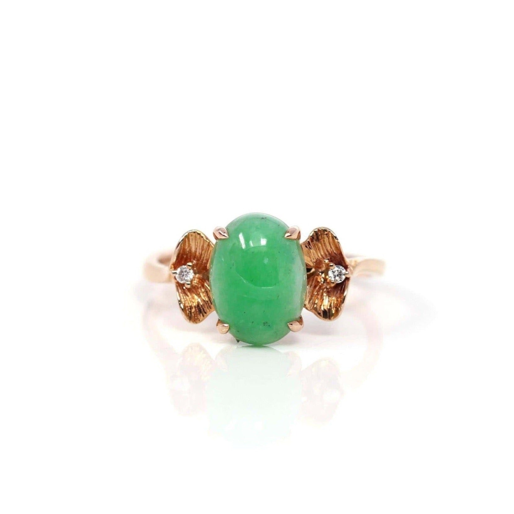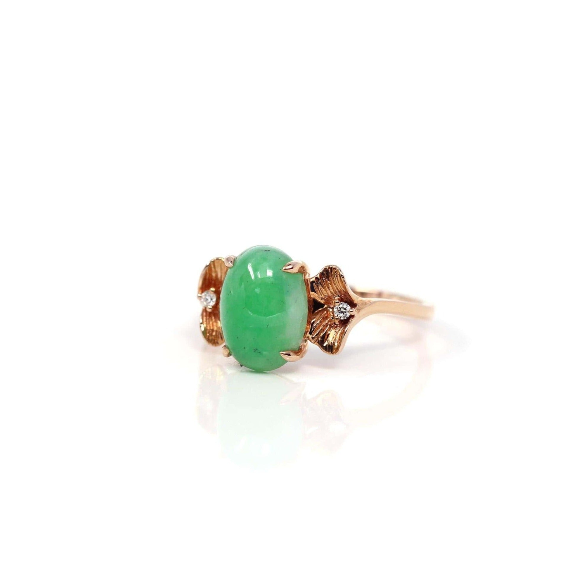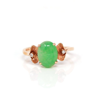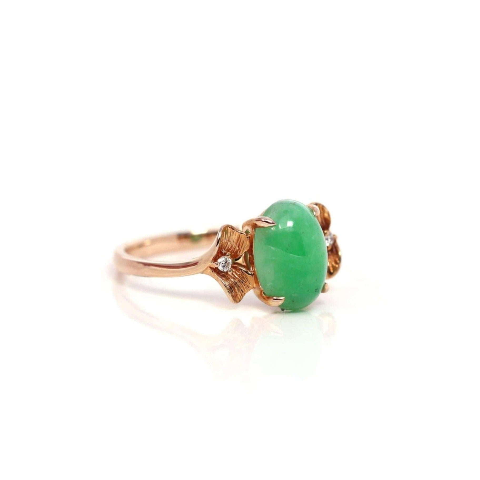 18k Rose Gold Natural Imperial Green Oval Jadeite Jade Engagement Ring With Diamonds