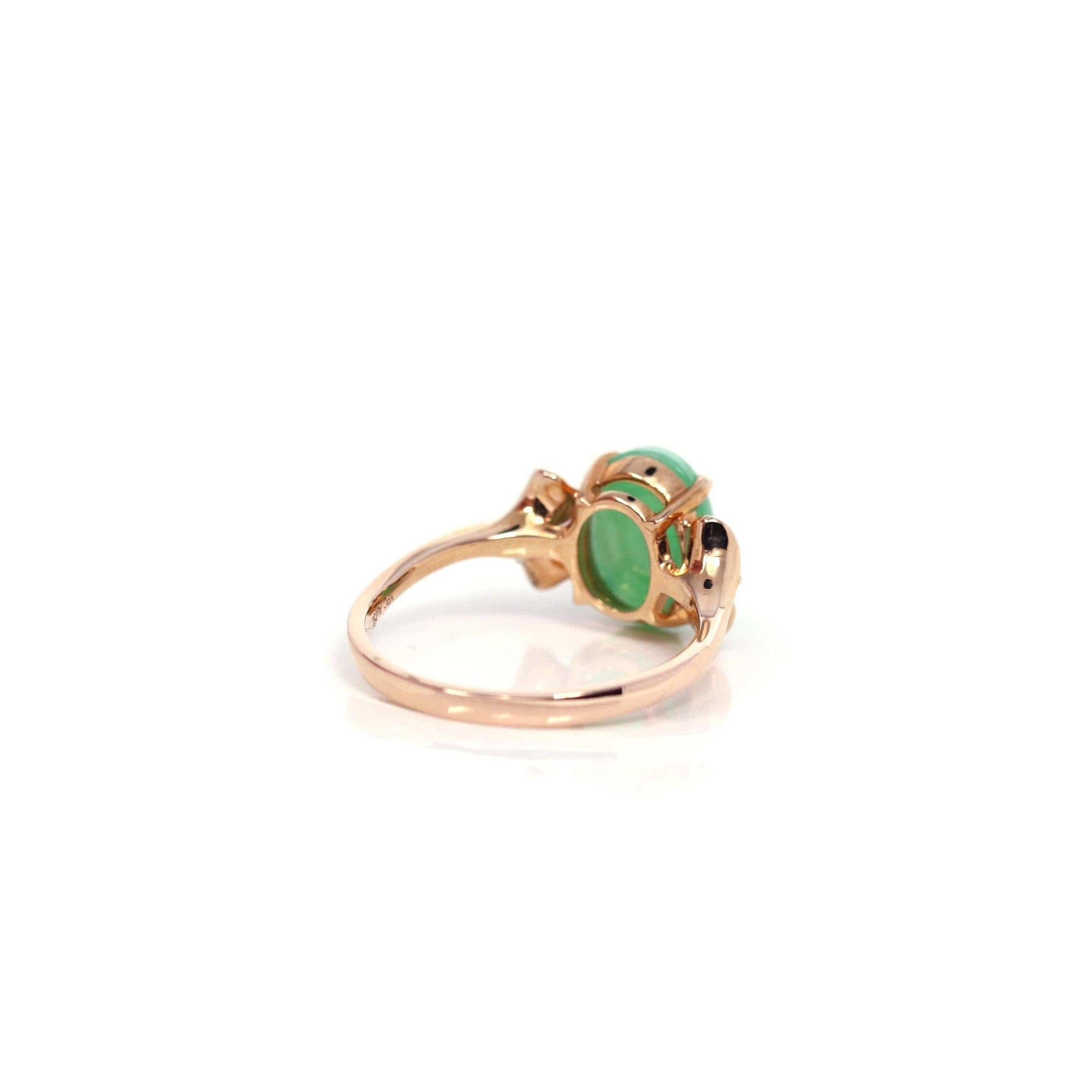 Baikalla™ "Marie" 18k Rose Gold Natural Green Imperial Jadeite Ring With Diamonds