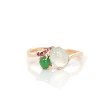 Baikalla™ 18k Rose Gold Natural Imperial Jadeite Morning Glory Engagement Ring