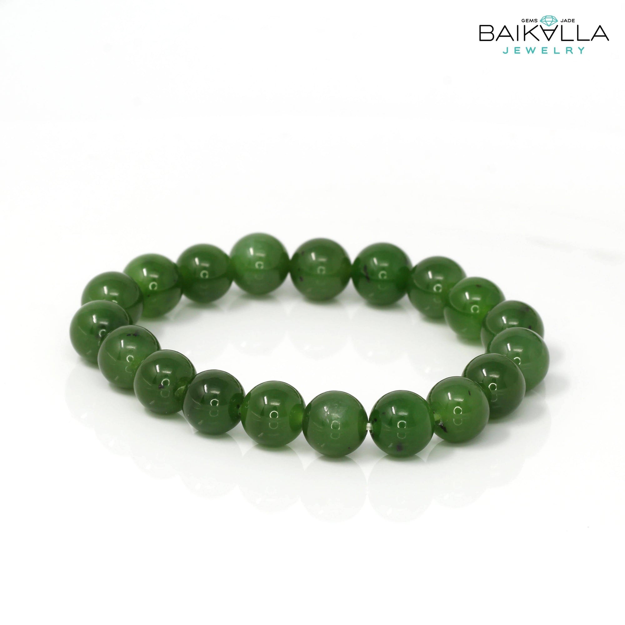 * DETAILS---Genuine Green Jade Beads Bracelet. This bracelet is made with high-quality genuine green jade with few black spots. The beads' texture is so smooth and translucent. In fact, the black spots are just patches that are so dark green, it appears black, that's why green jade always comes spots of black. So if the piece all are green without black spots, just like a VS diamond vs. a SI diamond. The one free of conclusions will be more expensive. The classic round beads bracelet looks very beautiful and affordable. It's a high-quality and perfect gift for yourself or your love.