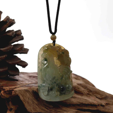 Genuine High quality Burmese Yellow Blue-Green Jadeite Jade PiXiu Pendant Necklace