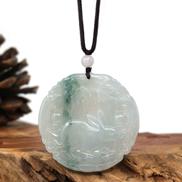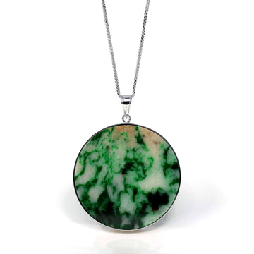 Genuine Ice Green Jadeite Jade "Good Luck Bamboo" Pendant Necklace With Real Jadeite Bead Necklace