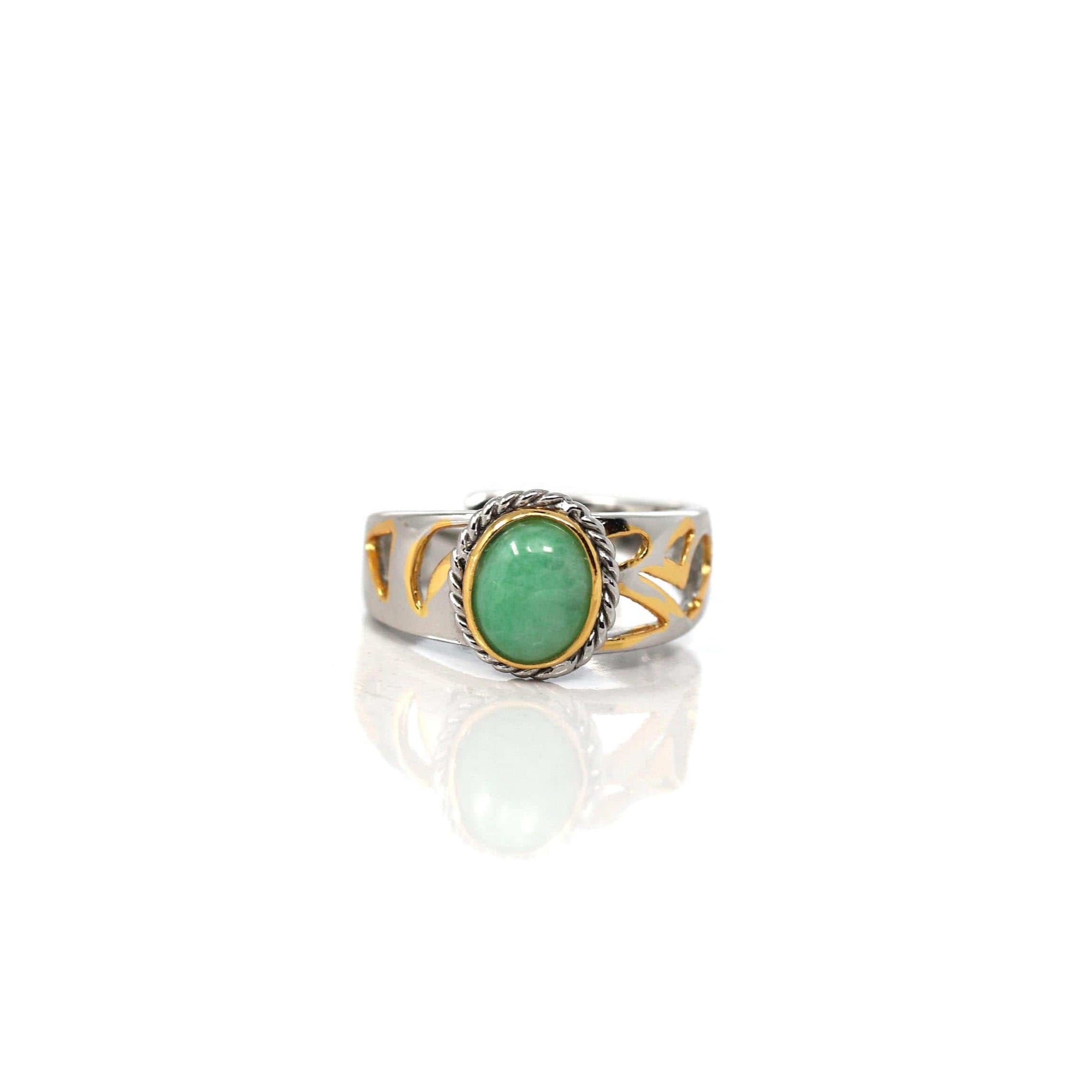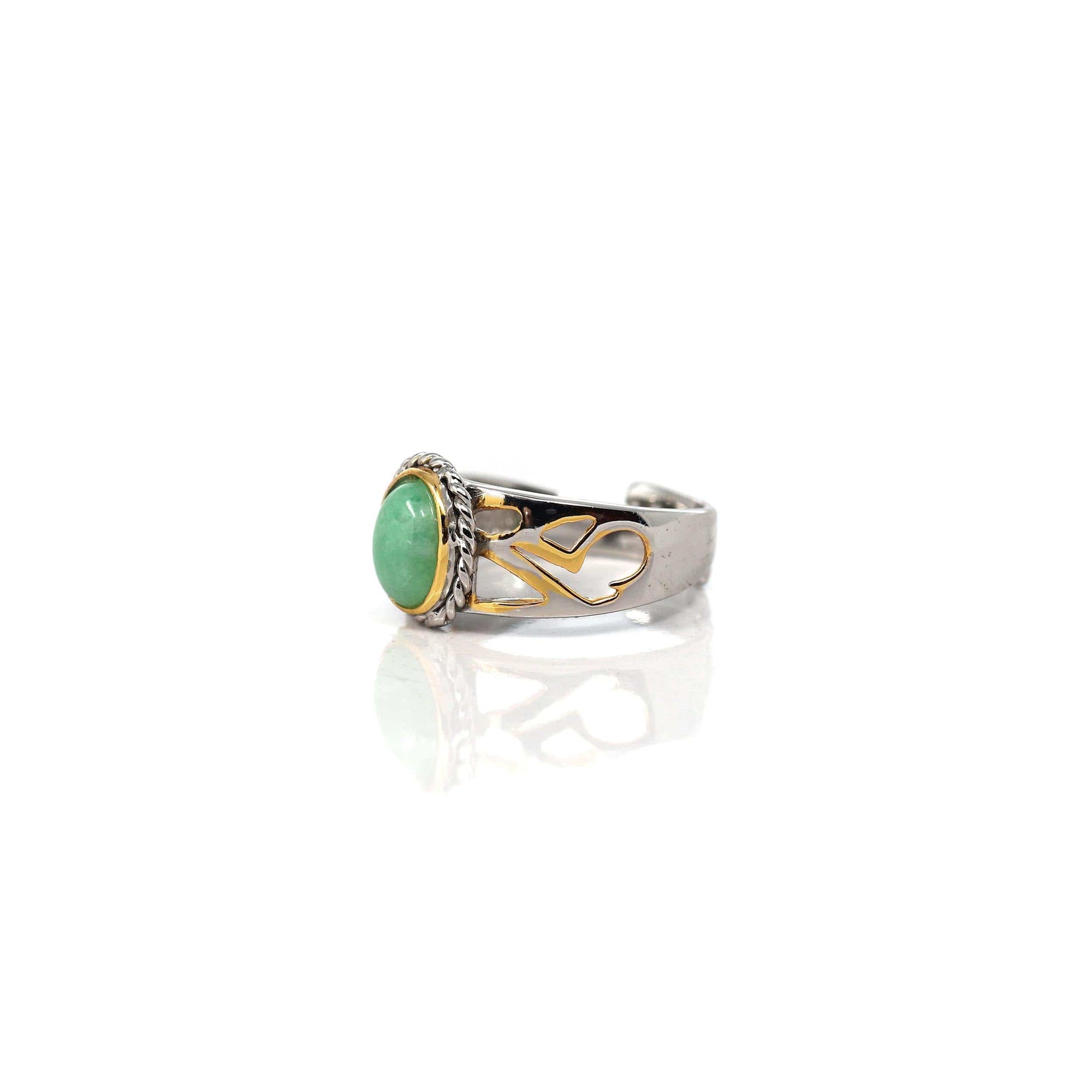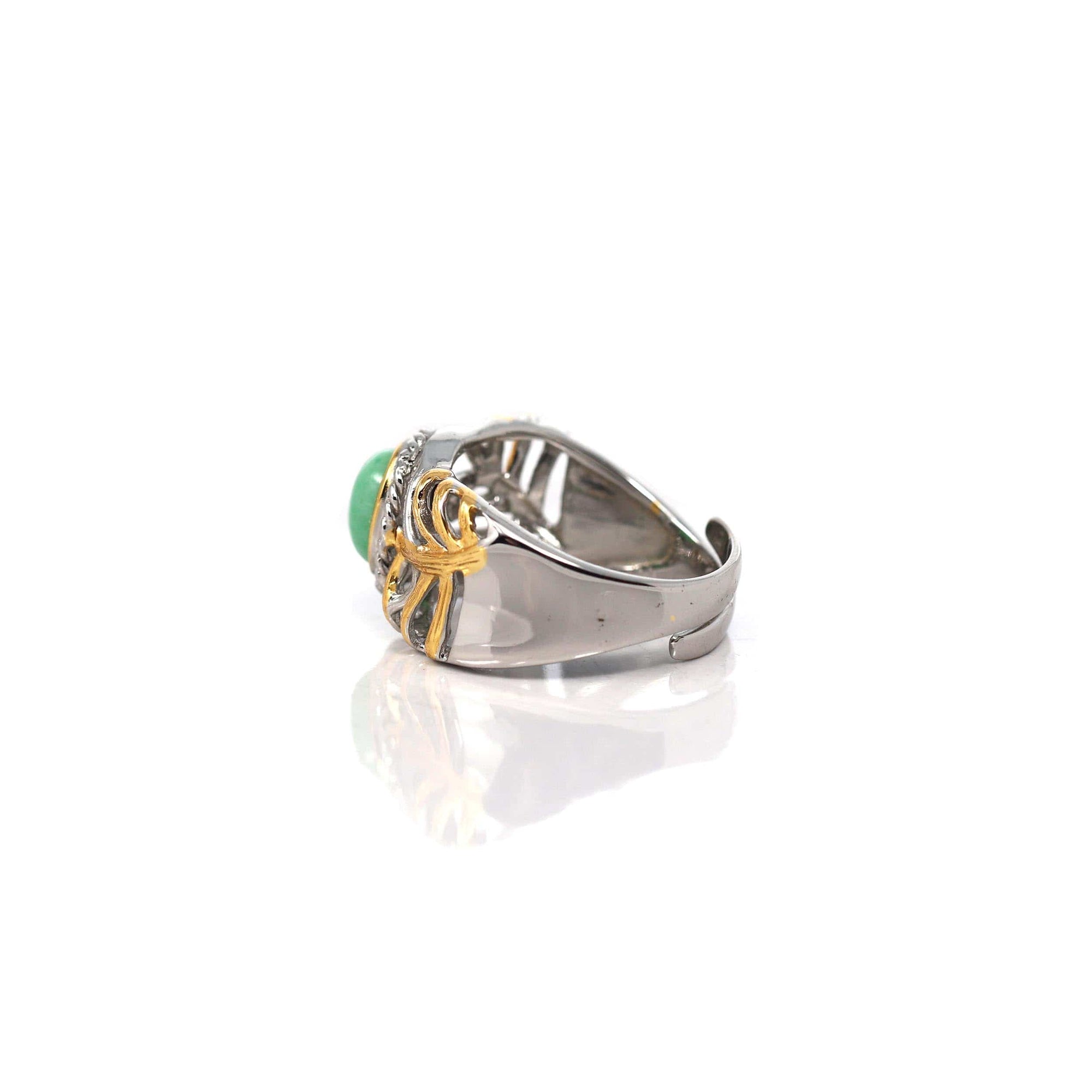 Baikalla Antique Natural Jadeite Jade Sterling Silver Gold Plated Two Tone Ring