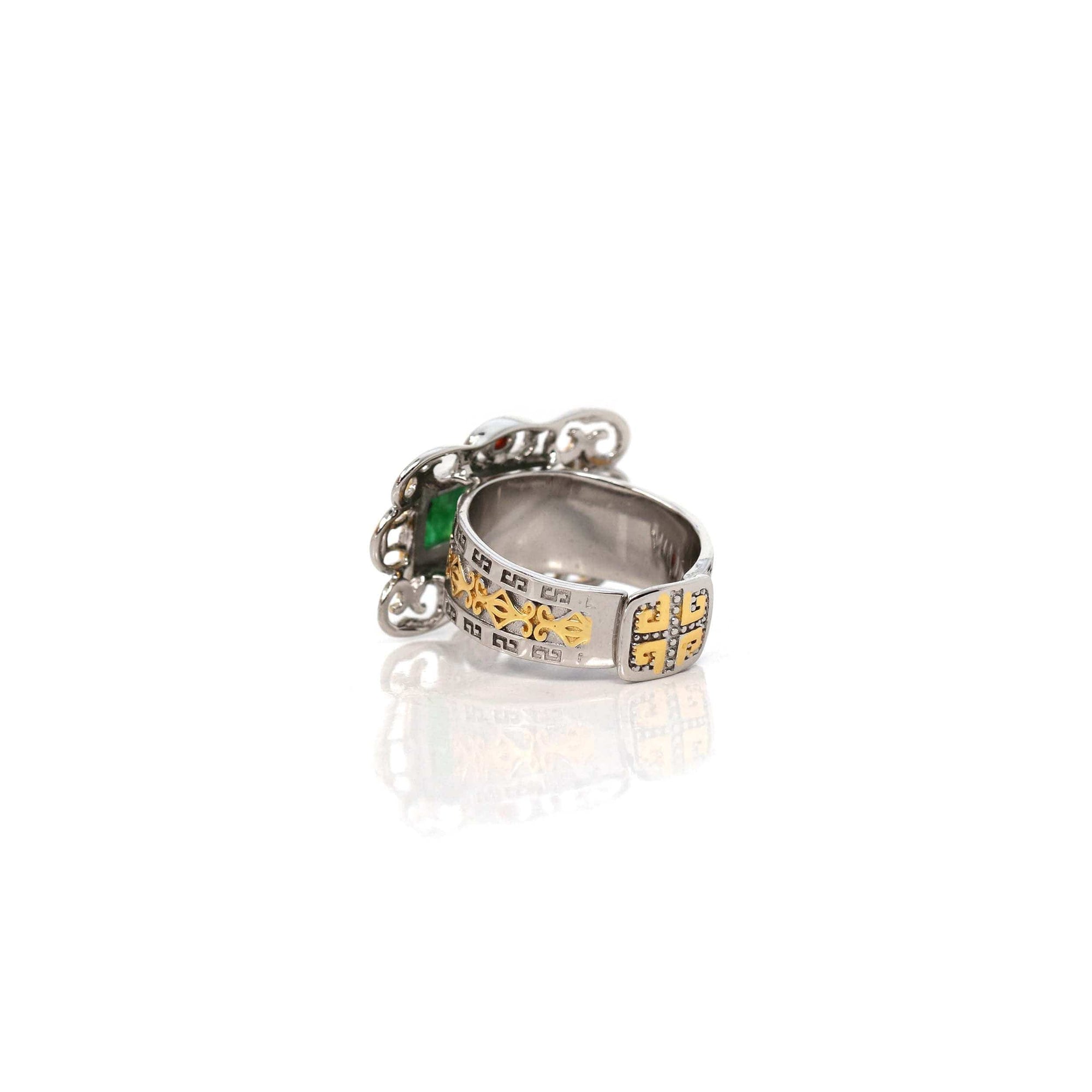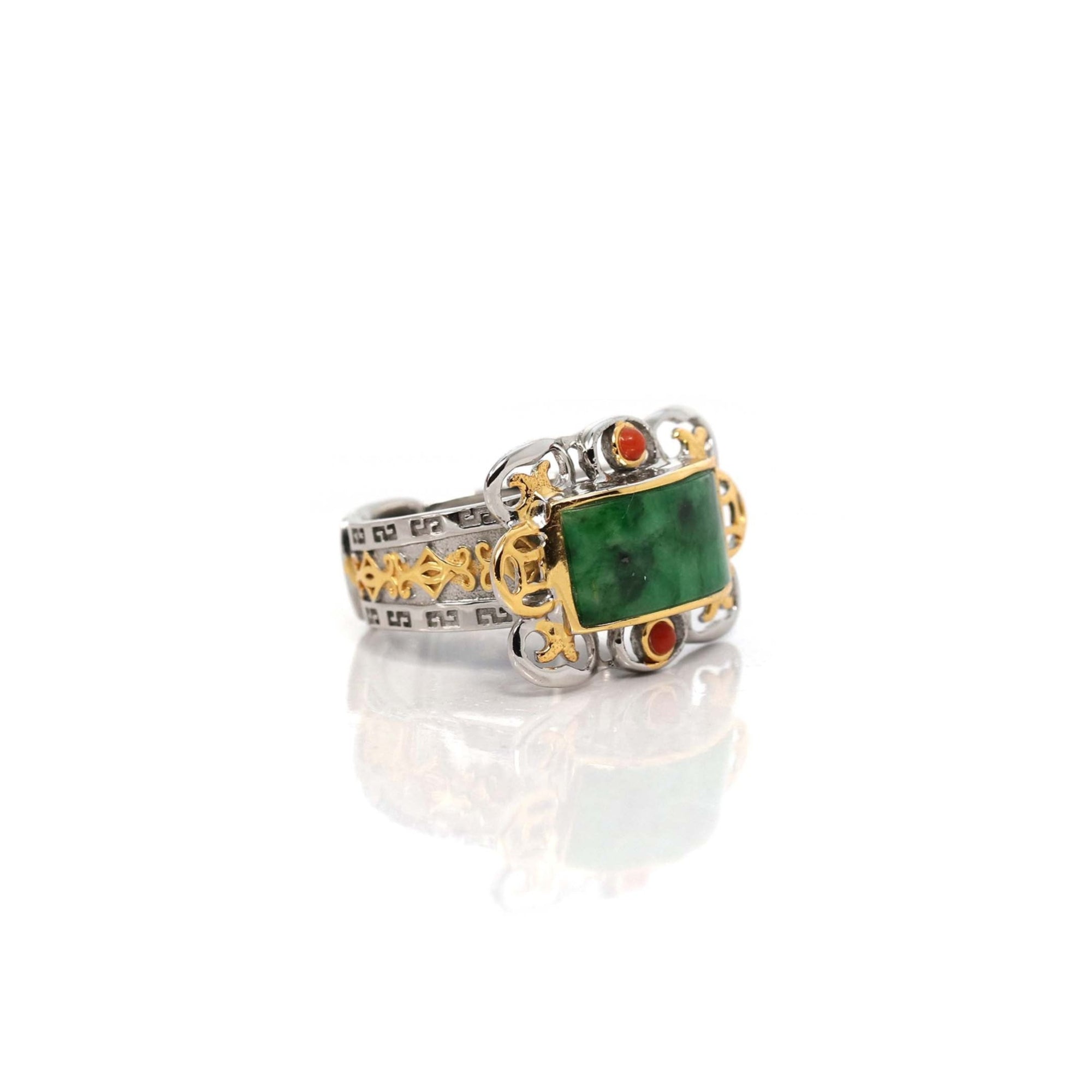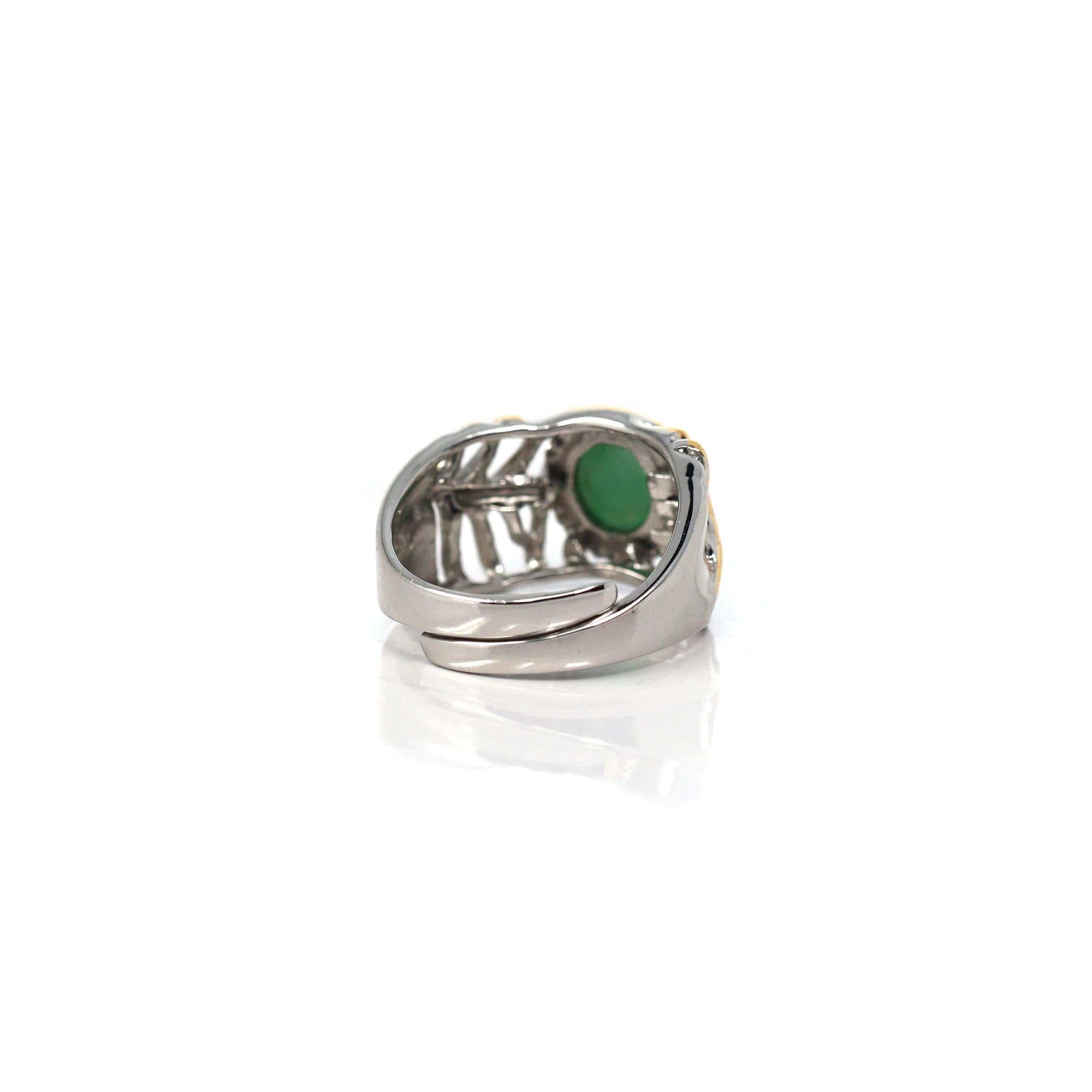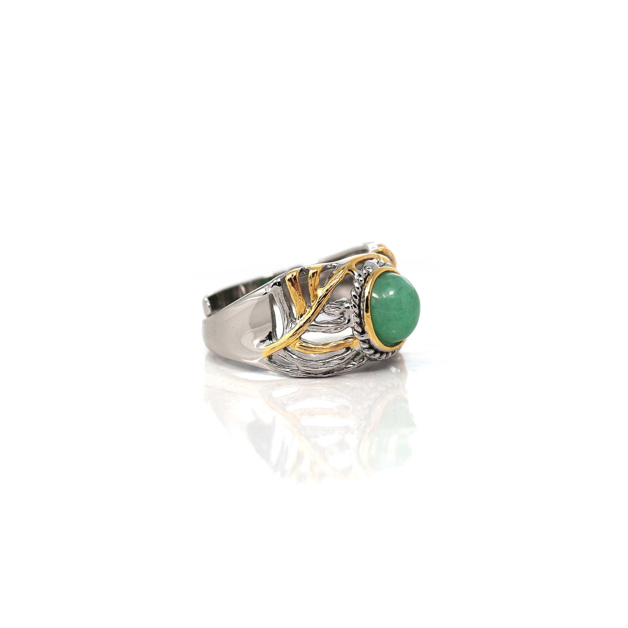 Baikalla Antique Natural Jadeite Jade Sterling Silver Gold Plated Two Tone Ring