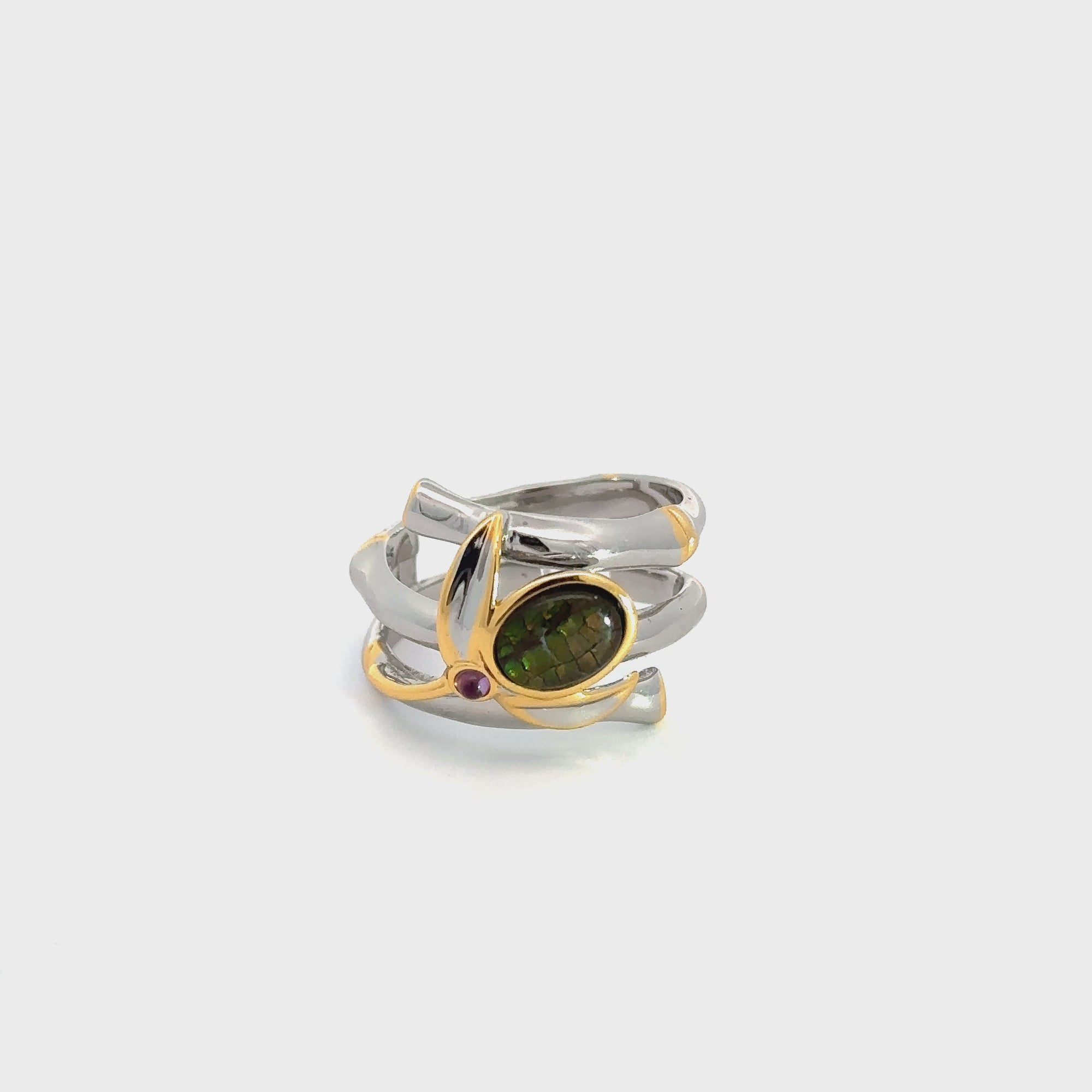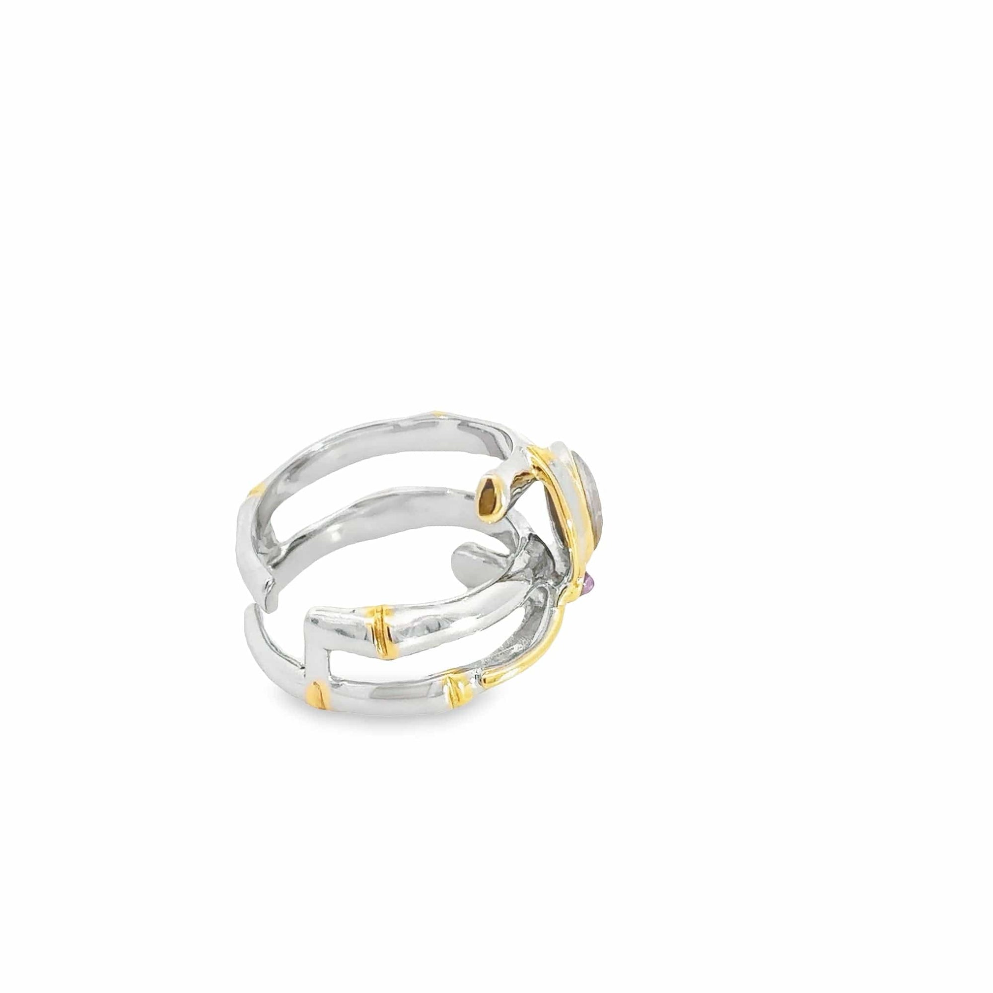 Baikalla Antique Natural Ammonite Sterling Silver Gold Plated Two Tone Ring