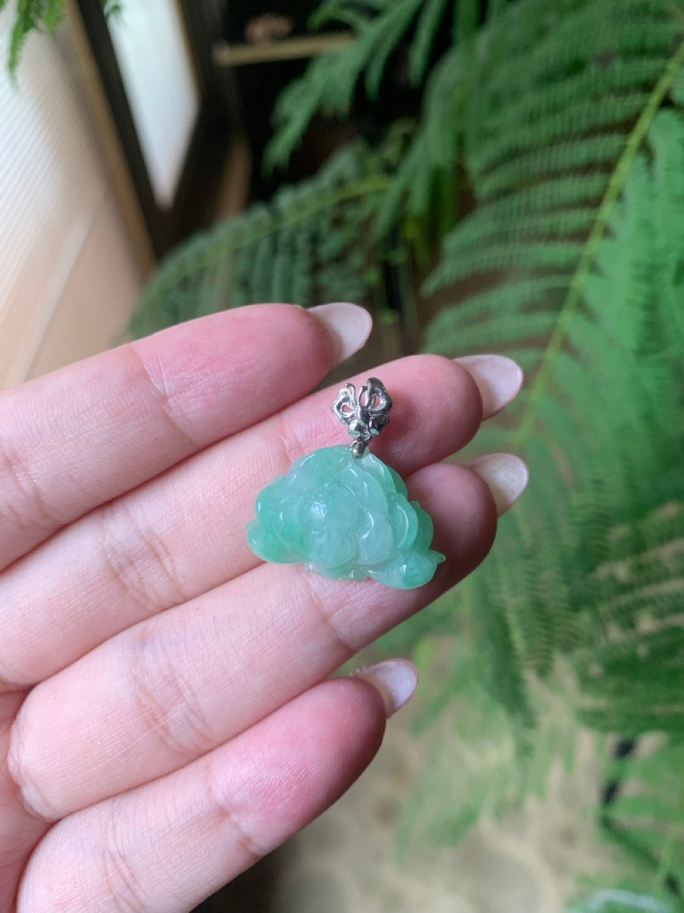 Baikalla "Good Luck Button" Light Forest Green Jadeite Jade TongTong Pendant Necklace