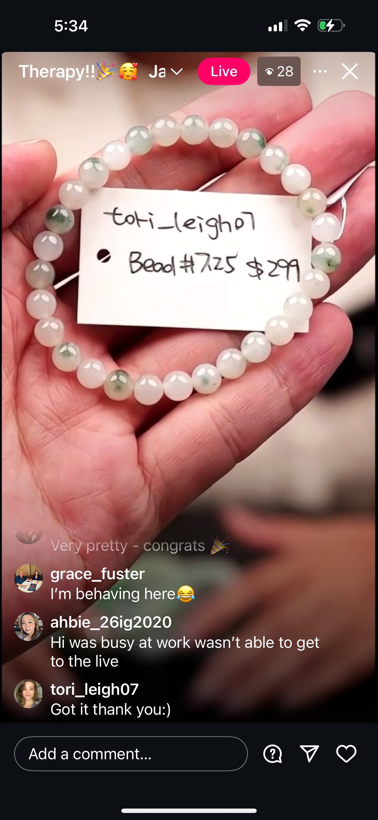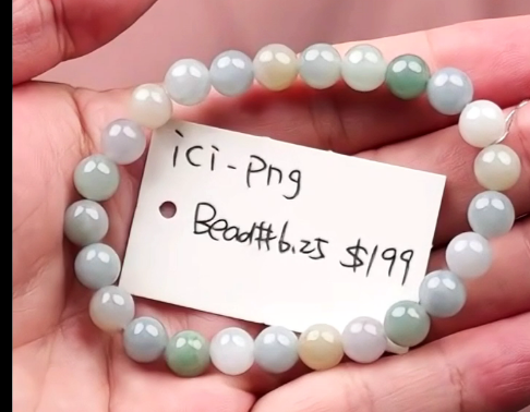"Live" Natural Green & White Multi Color Jadeite Jade Bead Bracelet" (07/12/25)
