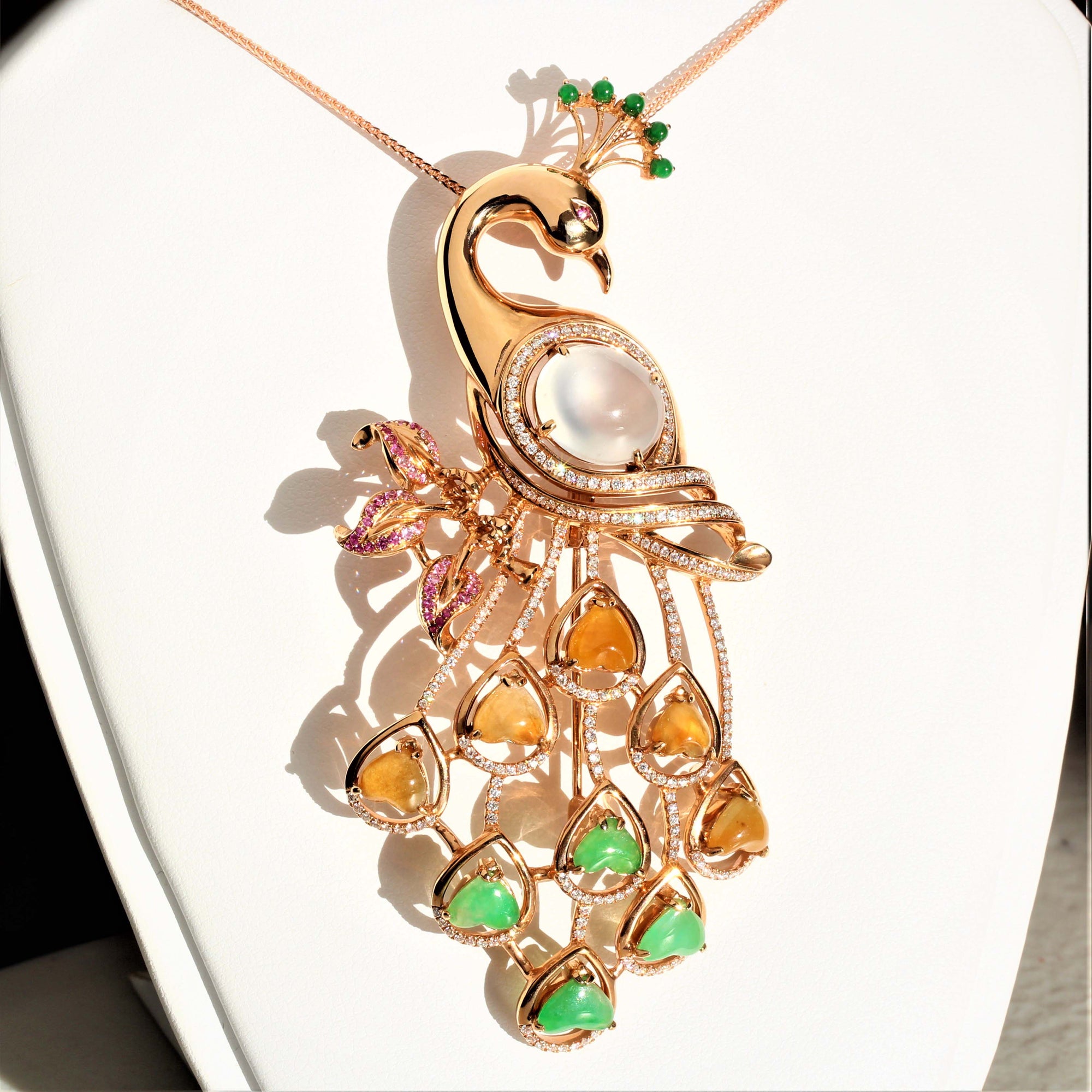 Baikalla Jewelry 18k Gold Jadeite Necklace "Bird on A Tree" Baikalla Jewelry Signature Neck-piece Brooch Necklace