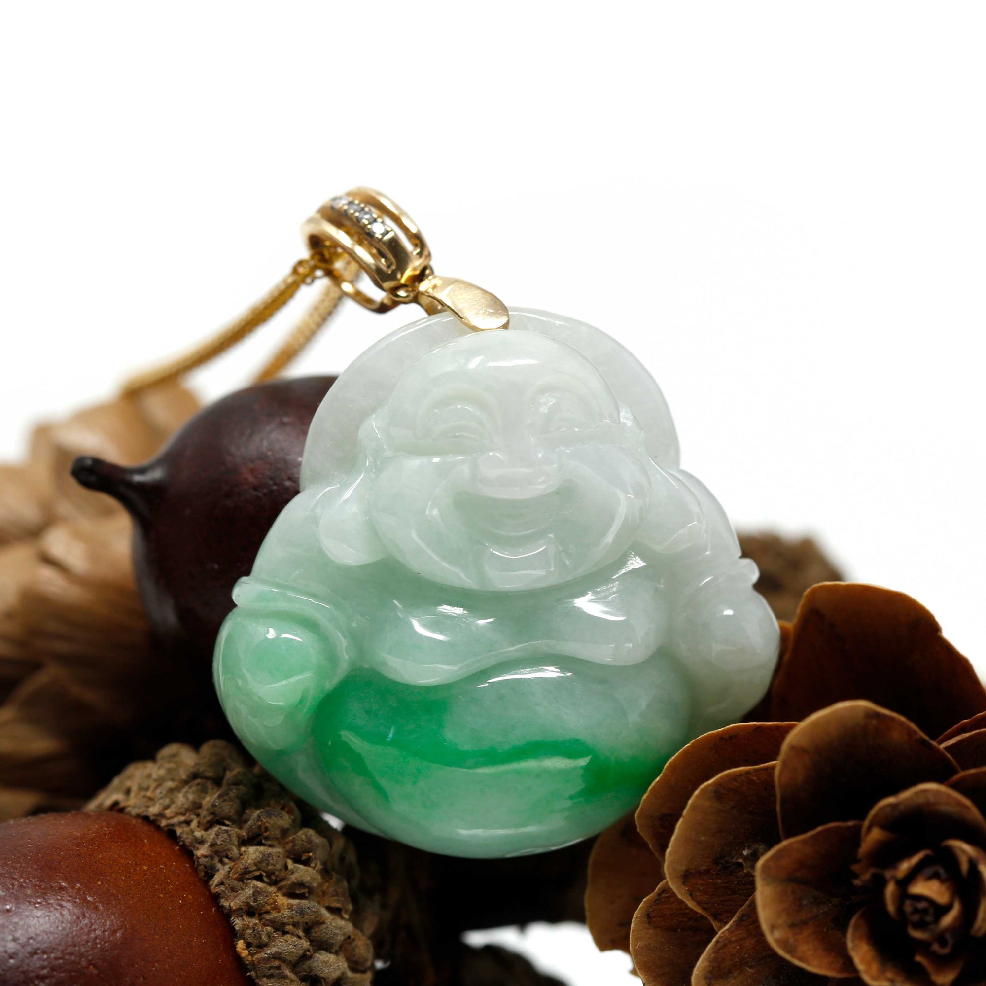 Baikalla High-end 14K White Gold Genuine Burmese Ice Jadeite Jade Buddha Pendant with Diamonds High Jewelry