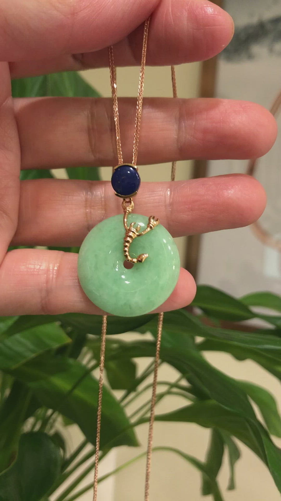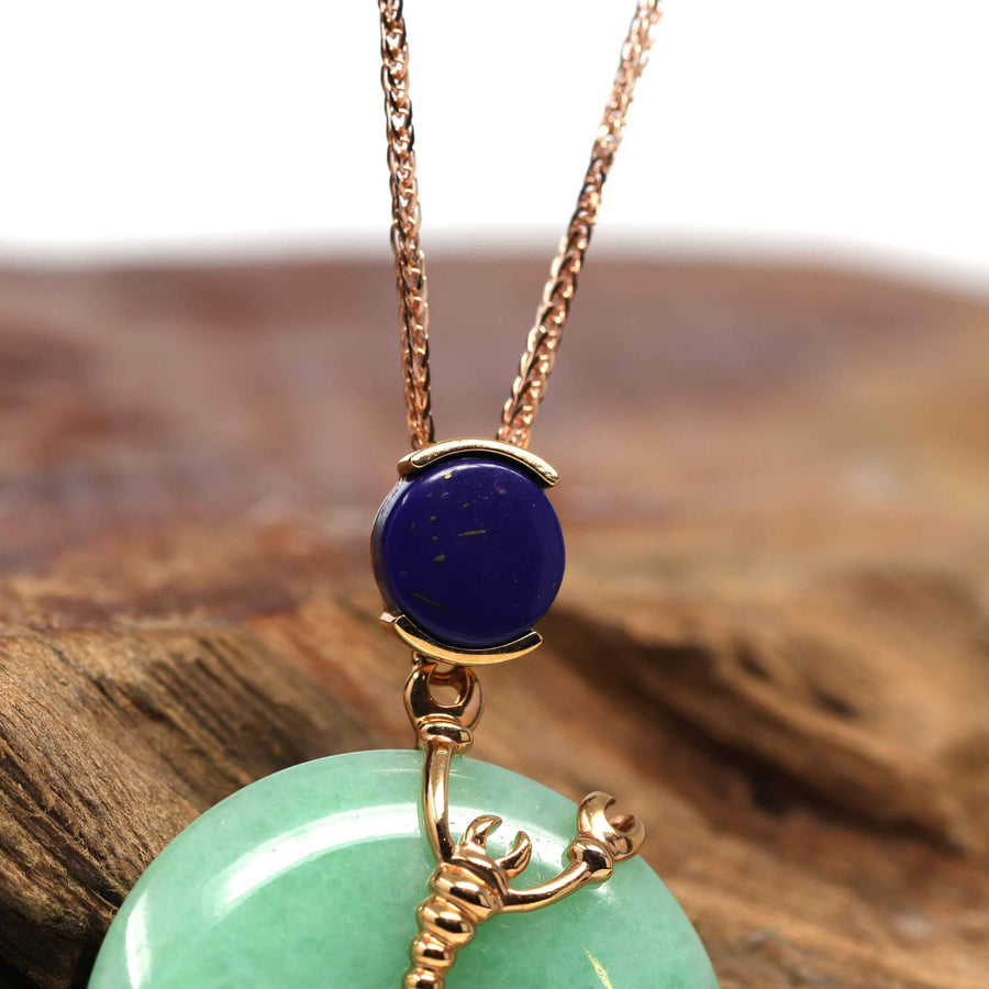 18k Rose Gold Genuine Burmese Jadeite Constellation (Scorpio) Necklace Pendant With Lapis Bail