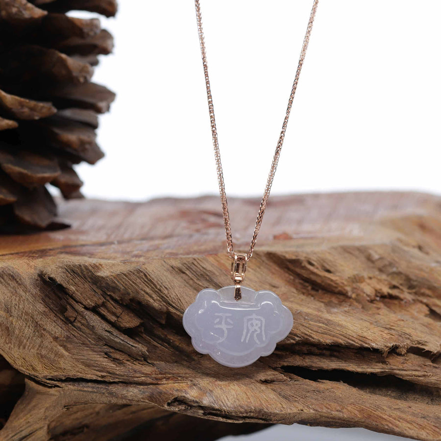 Baikalla Jewelry Jade Pendant 18k Rose Gold Genuine Burmese Lavender Jadeite Happiness ( Fu & Pingan ) Pendant Necklace