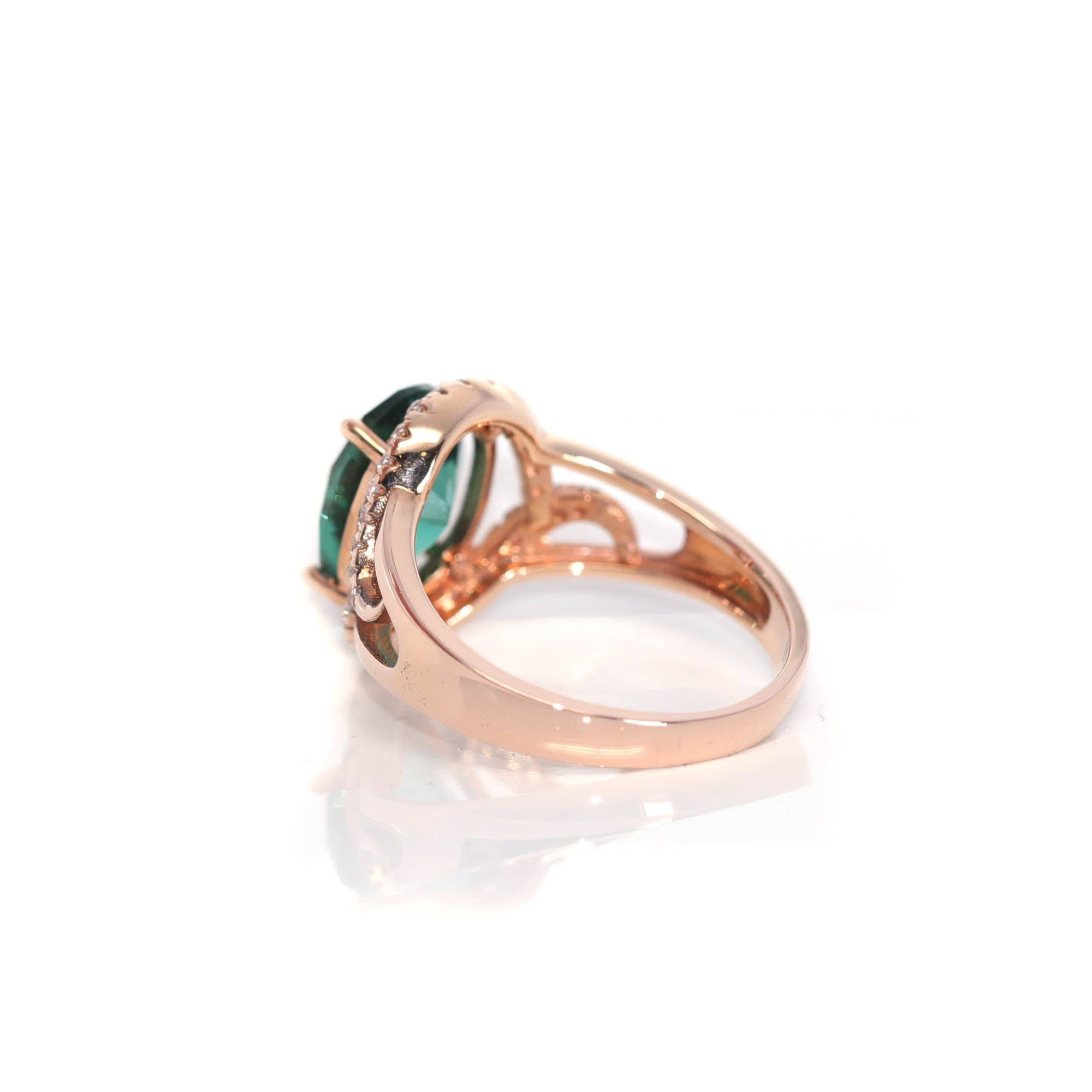 18k Rose Gold Lab-Created Blue Sapphire Ring With CZ