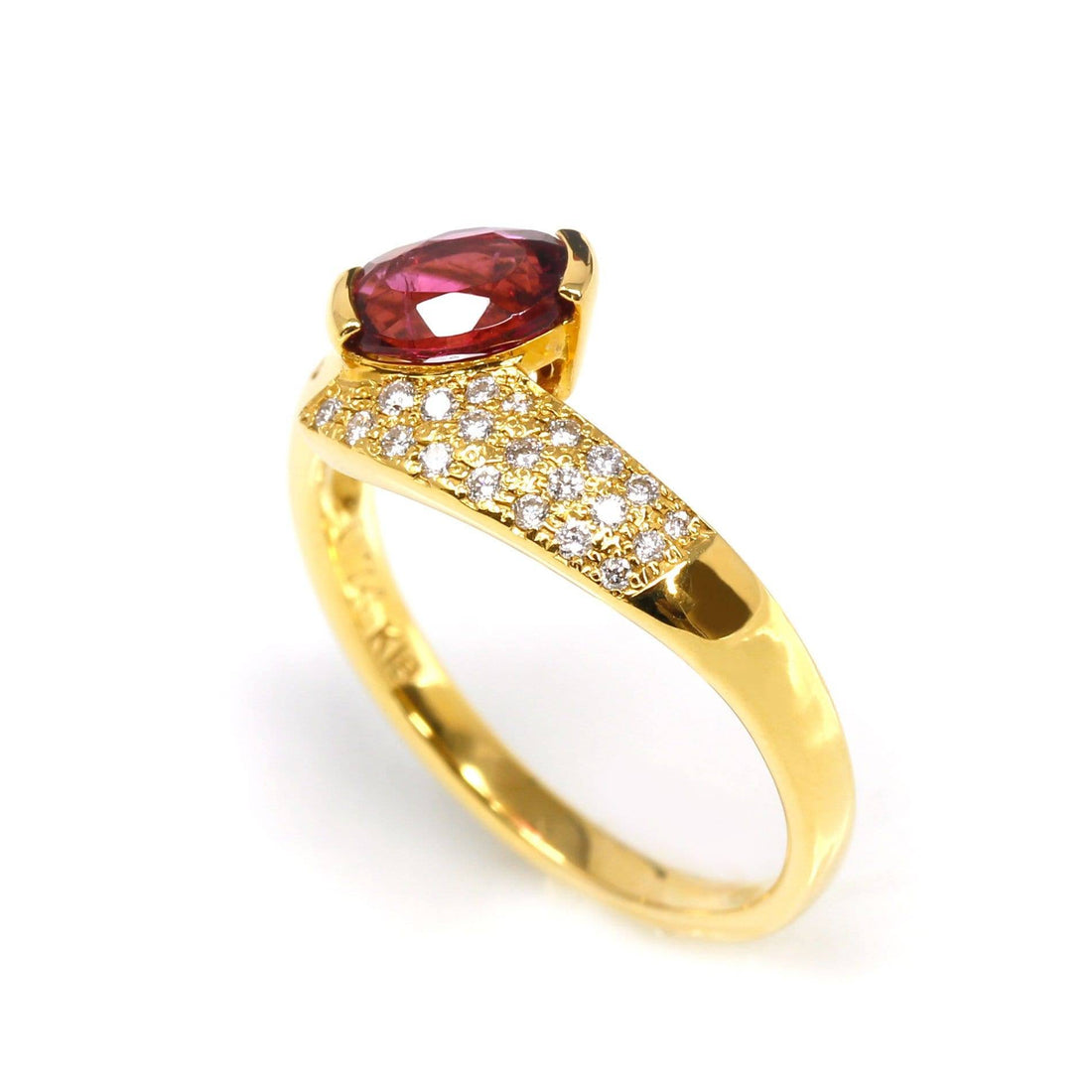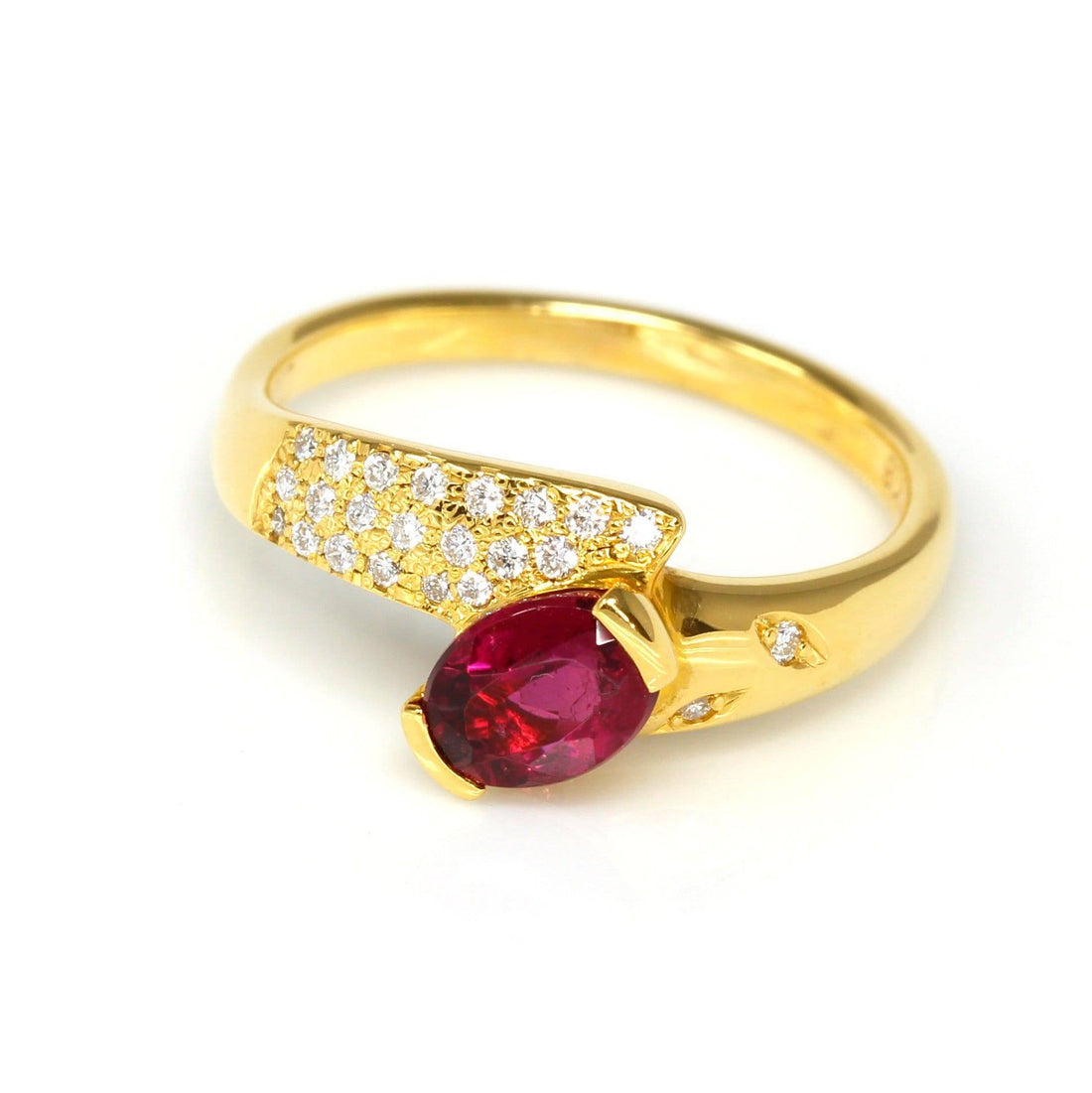 Baikalla Jewelry Gold Ruby Ring 18k Yellow Gold Natural Oval Ruby Diamond Anniversary Ring