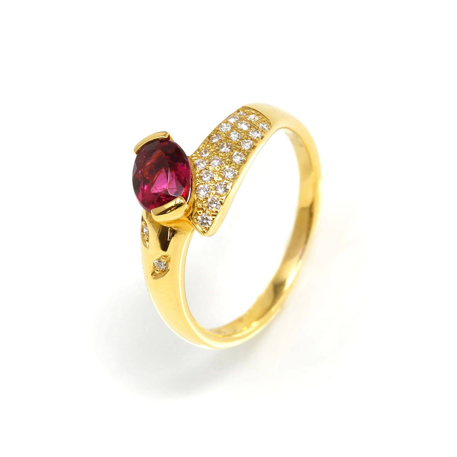 Baikalla Jewelry Gold Ruby Ring 6.5 18k Yellow Gold Natural Oval Ruby Diamond Anniversary Ring