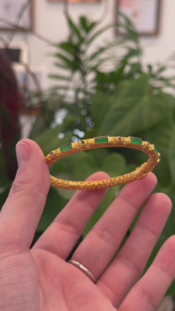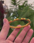 18K Yellow Gold & Imperial Jadeite Jade Bangle With Colors Gems