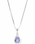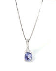 Baikalla Jewelry Gemstone Pendant Necklace Tanzanite Pendant Necklace Baikalla™ 14k White Gold Natural Tanzanite Cushion Cut Prong Set Necklace With Diamonds