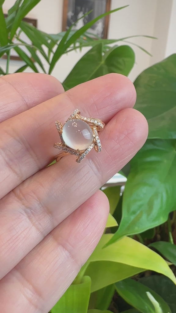 Baikalla™ 18k Rose Gold Natural Ice Jadeite Engagement Ring With Diamonds