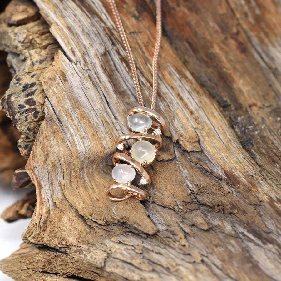 Baikalla™ "Alice" 18k Rose Gold Ice Jadeite Jade Diamond Pendant Necklace