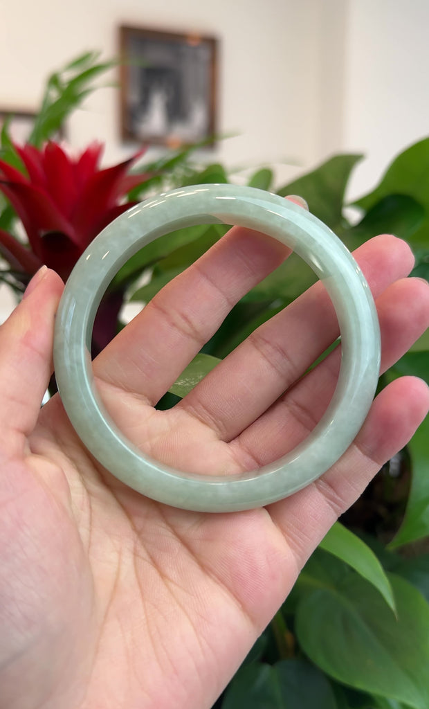 * DETAILS--- Genuine Burmese Jadeite Jade Bangle Bracelet. This bangle is made with high-quality genuine Burmese jadeite jade, The jade texture is so smooth as similar ice texture with light green. The bangle looks very clean and bigger size. Just has a little bit natural clouds, It's a very unique gift for yourself or your loved ones.