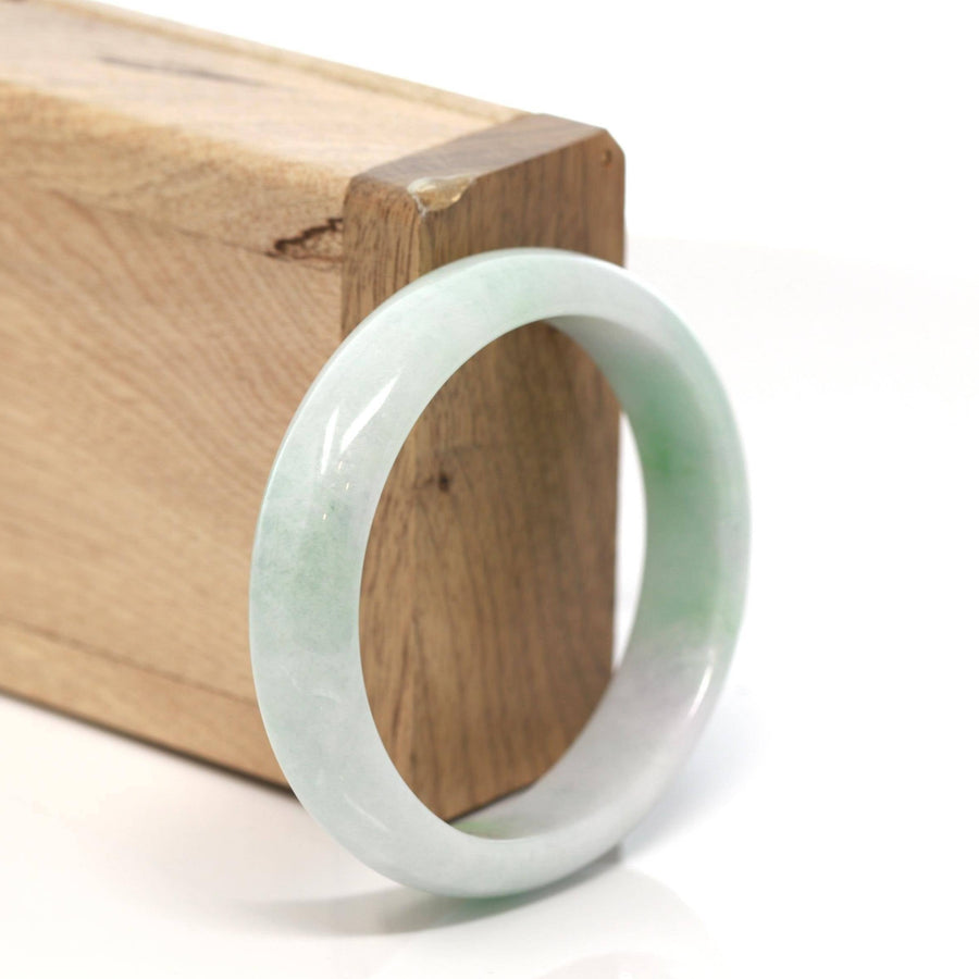 * DETAILS--- Green Genuine Burmese Jadeite Jade Bangle Bracelet. All Baikalla Jewelry's Jade Bangles are guaranteed to be untreated. The jade texture is fine with green color patches throughout. The texture is smooth and fine. With little cloudy spots. The green color is truly mesmerizing. The Classic half-round style bracelet is comfortable. It's very luxurious, high-quality, and affordable. It's a high-quality gift for yourself or your love..