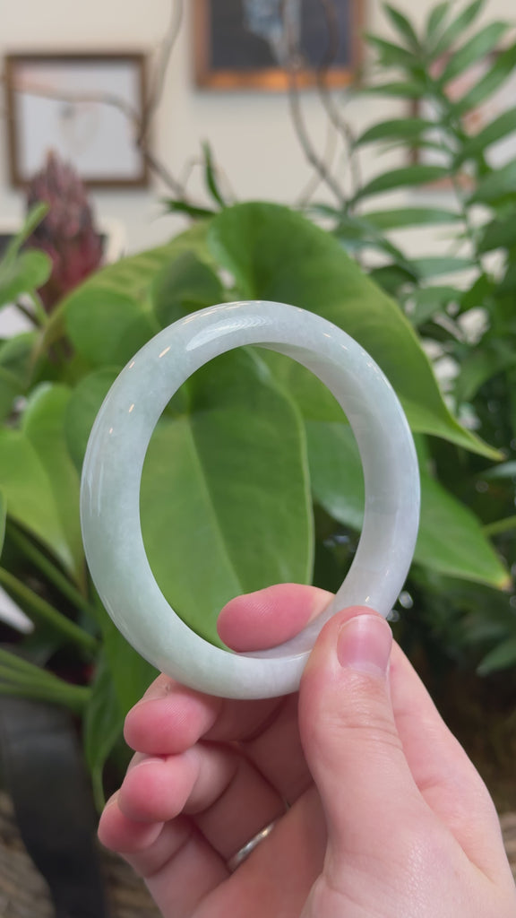 * DETAILS--- This Genuine Burmese Jadeite Jade Bangle Bracelet is crafted from high-quality green Jadeite jade. The fine, translucent texture is highlighted by patches of deeper blue-green hues, creating a unique and mesmerizing look. The stunning shades of blue-green make this bangle truly stand out. Its classic half-round style adds an elegant touch, making it a timeless piece for any collection. It's also a special gift for yourself or a loved one.