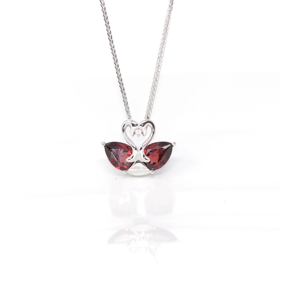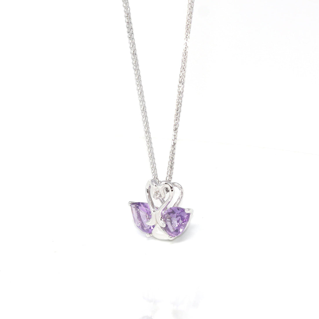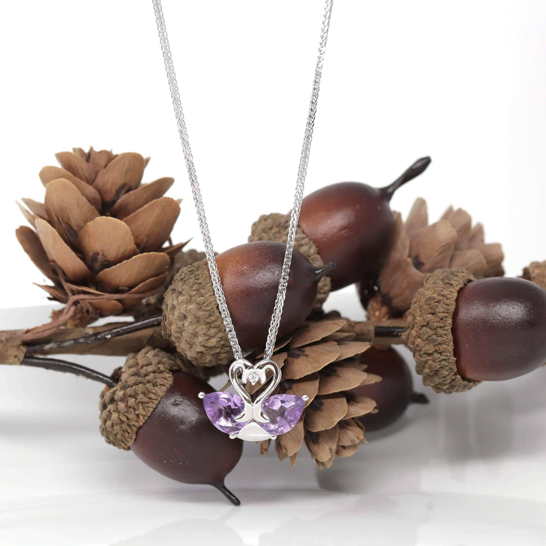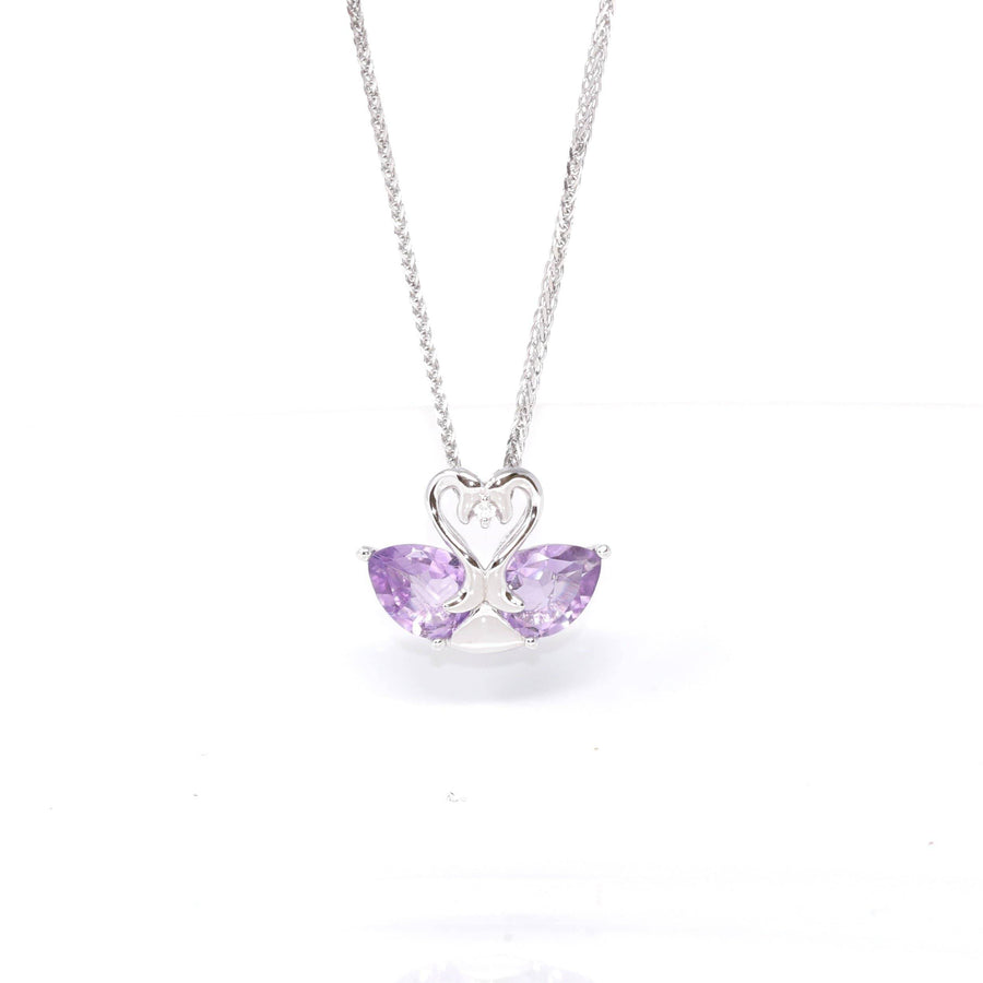 Baikalla™ Classic Sterling Silver Natural Amethyst Garnet Swan Pendant Necklace