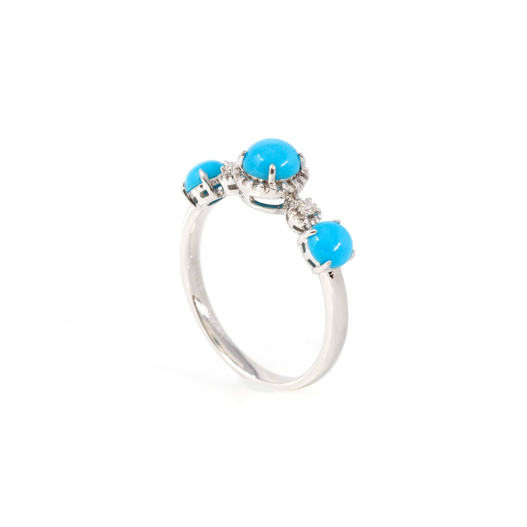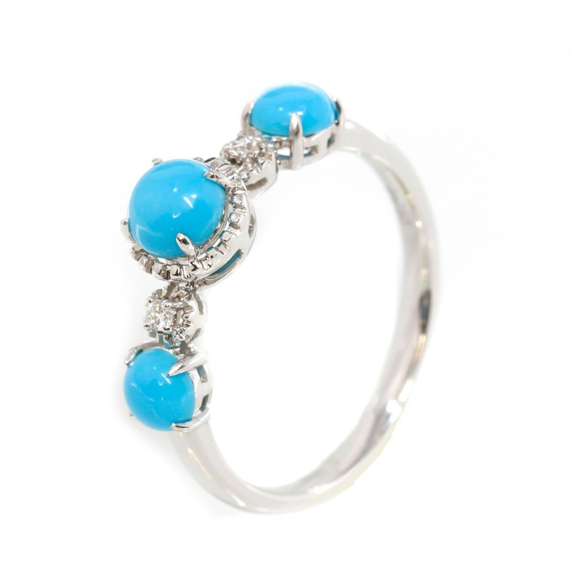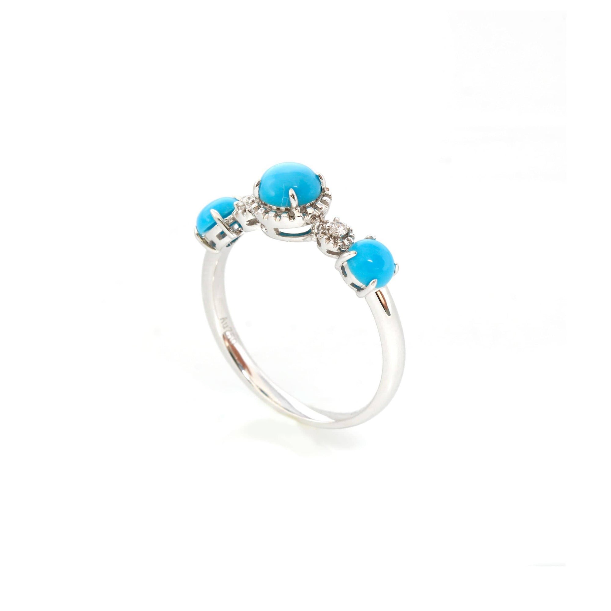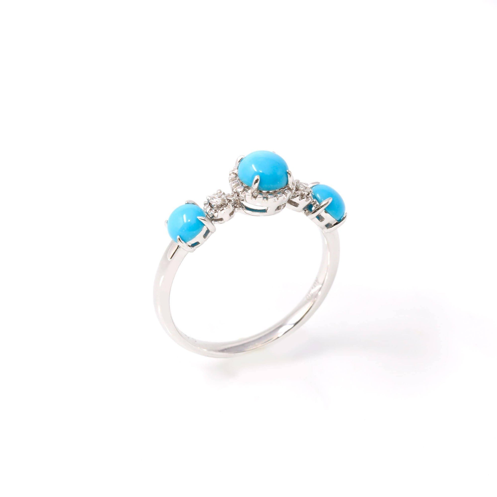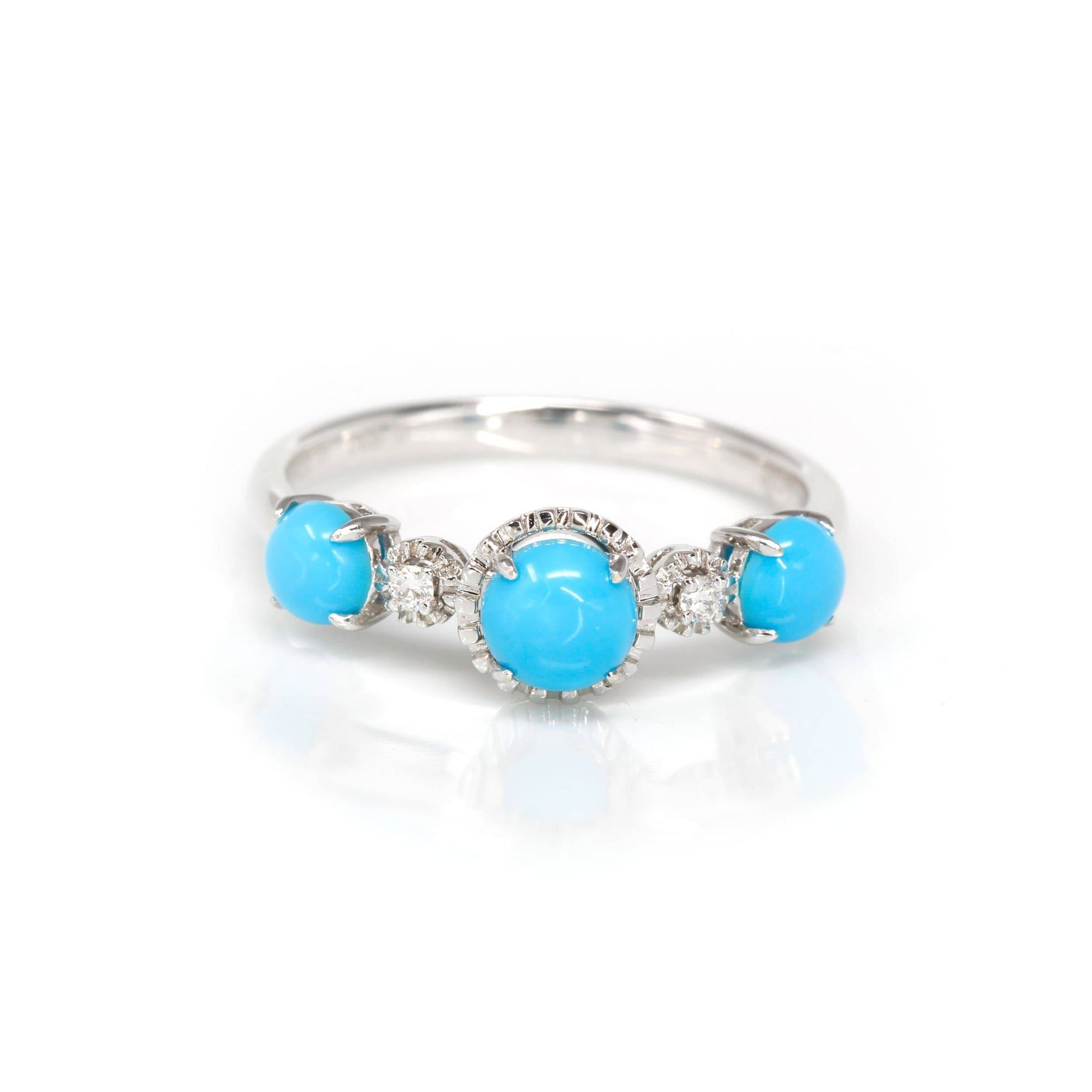 * INTRODUCTION----- Inspired by the beautiful December birthstone turquoise. Using high-quality natural gem, and the intense blue color looks clean to the eye and bright with no matrix. The design is a classic yet unique three-stone style. Featuring diamonds and intricate fillagree metalwork.  A great casual gift for your love or just for yourself. Baikalla gemstones are genuine stones that are highly valued for their beauty, longevity, and rarity.