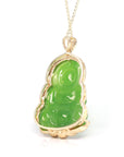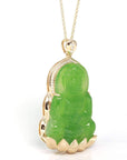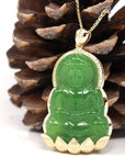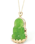 Baikalla™ 14K Yellow Gold Genuine Nephrite Luxury Apple Green Jade Guanyin Pendant Necklace With VVS1 Diamonds