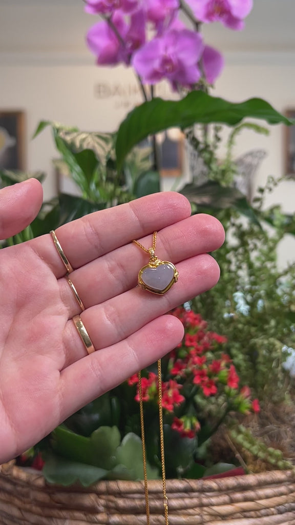 Baikalla "Heart" 18K Yellow Gold Icy Light Lavender Jadeite Jade Pendant W/ Natural Diamonds