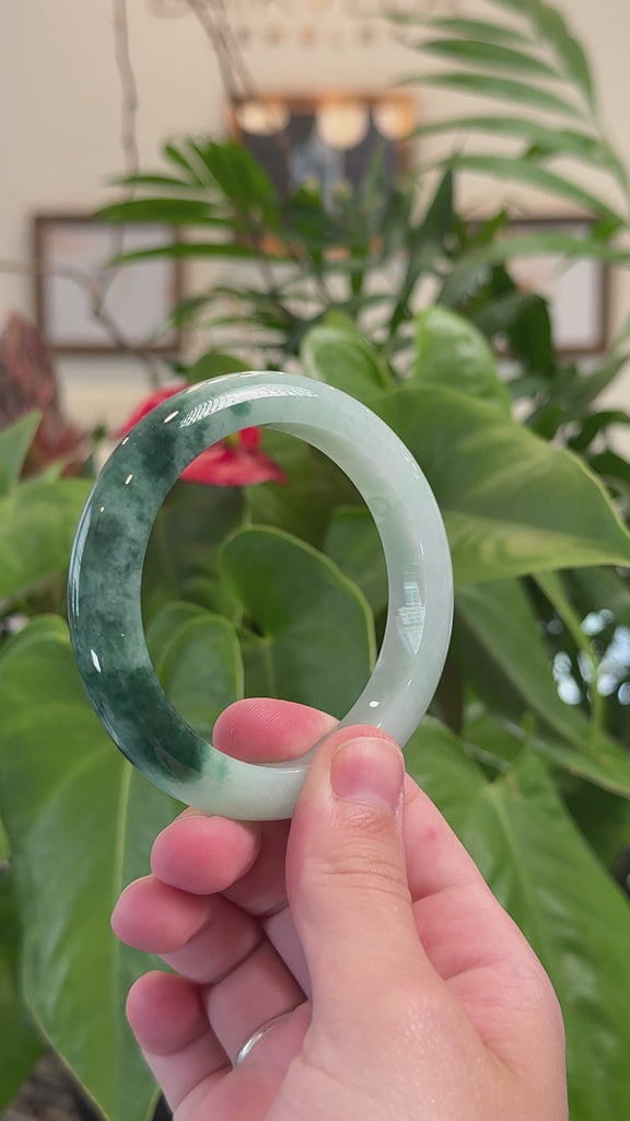 * DETAILS--- This beautiful bangle is made from natural Burmese Jadeite jade, featuring very smooth texture, with beautiful dark blue colors on half of the bangle and light green color on the other half. It's a half round, comfort-fit bangle, which is flat on the inside of the bangle and comfortable for everyday wear. This bangle has very few visible texture, overall very smooth and no natural lines. This is really a unique color pattern. A timeless piece, perfect as a thoughtful gift for yourself or someone truly special.
