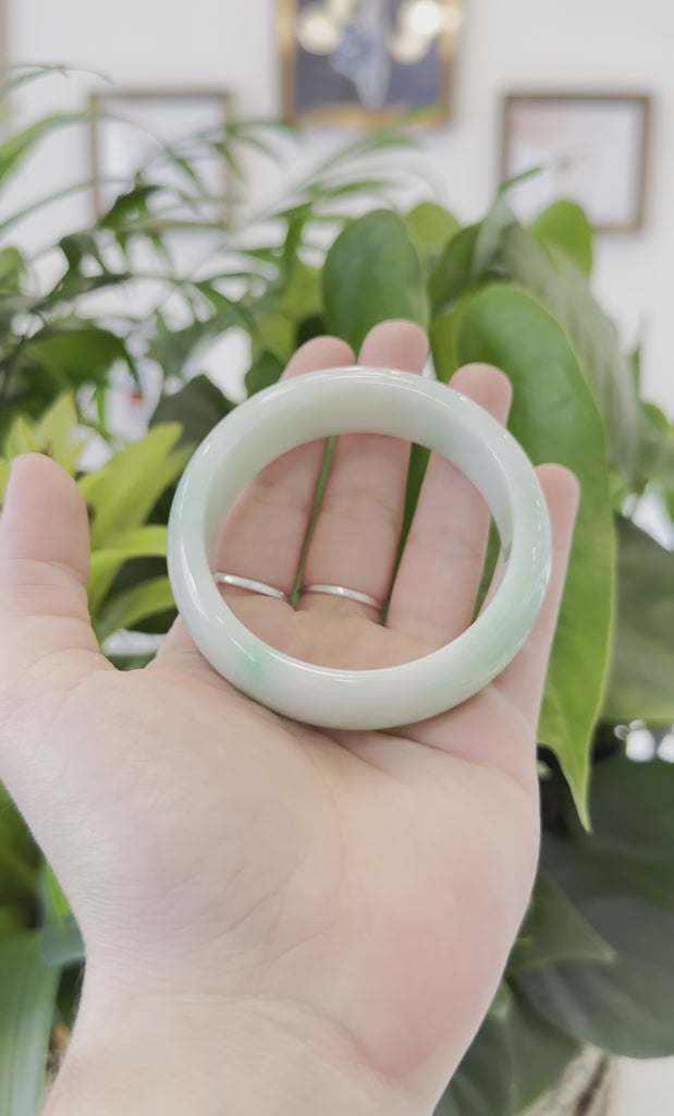 * DETAILS--- This bangle is made with very high-quality genuine Burmese Jadeite jade. The jade texture is fine and smooth with green color. It looks so beautiful in a wider size. It's a luxury gift for you and your love. It's a collectible item.