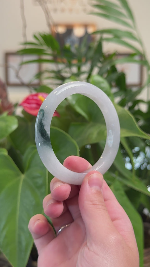 * DETAILS--Genuine Burmese Jadeite Jade Bangle Bracelet. This bangle is made with high-quality genuine Burmese blue-green Jadeite jade. The jades fine texture really stands out and is so smooth, with a unique blue patch, truly a mesmerizing combination. The Classic half-round style bangle looks completely beautiful with blue-green. It's a very unique bangle for yourself or your love.