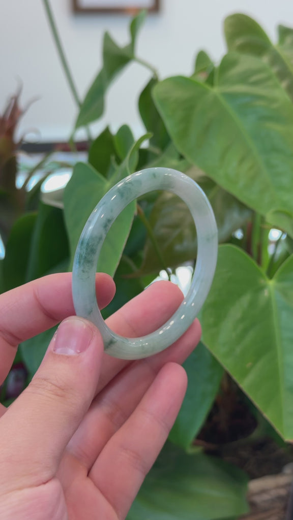 * DETAILS--- This bracelet is crafted from high quality, genuine Burmese icy blue-green Jadeite Jade with patches of "floating" blue green color. The jade’s texture is smooth and icy translucent, featuring a captivating blue green color through out, with no natural lines and no cloudy spots. The bangle has great icy translucency and beautiful fine texture. The bangle has a classic full-round style that enhances its elegance also offers comfort, making it a perfect piece for jade lovers and collectors alike.