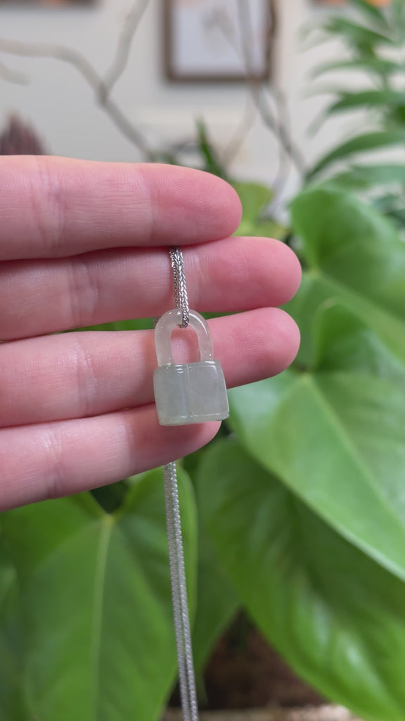 * Design Concept---Natural Ice Jadeite Jade Lock Necklace Pendant. This necklace is shaped like a lock symbolizing a love that is secure, enduring, and protected. The ice texture of jadeite jade is so nice . Perfect for you or your loved one.