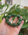 * INTRODUCTION--- Elevate your style with our Genuine Nephrite Jade Buddha Symbol TongTong Men's Bracelet, a harmonious blend of elegance and spirituality. Each bead is carefully shaped and carved to reveal nephrite jades stunning natural beauty. The charm also adds a touch of luxury and serves as a daily reminder of your spiritual journey, embracing the tranquility and serenity associated with Buddhism. Invest on your style alongside your spirituality with this extraordinary nephrite bracelet today.